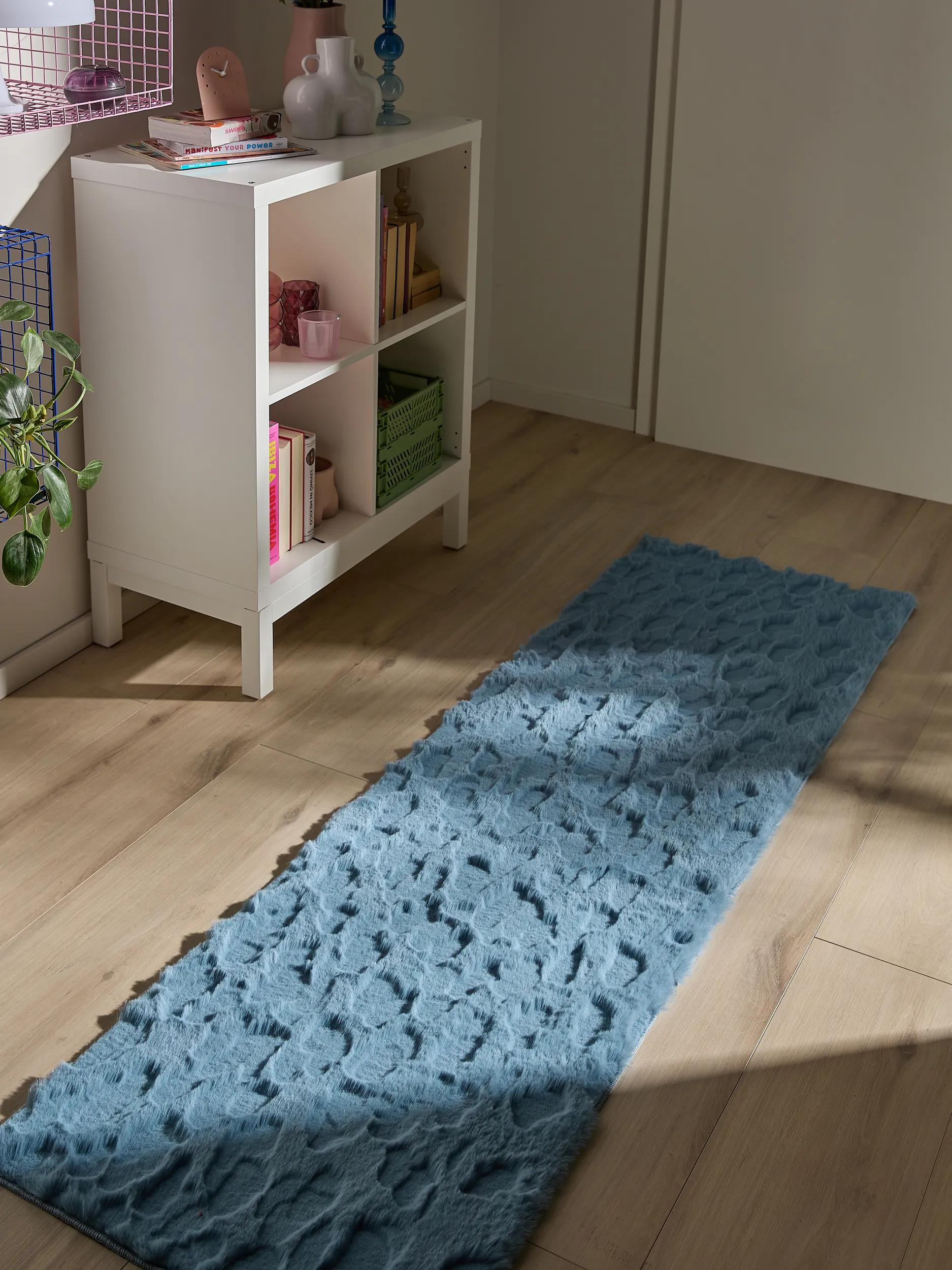 Tapis shaggy design texturé de couloir bleu 60x200 cm