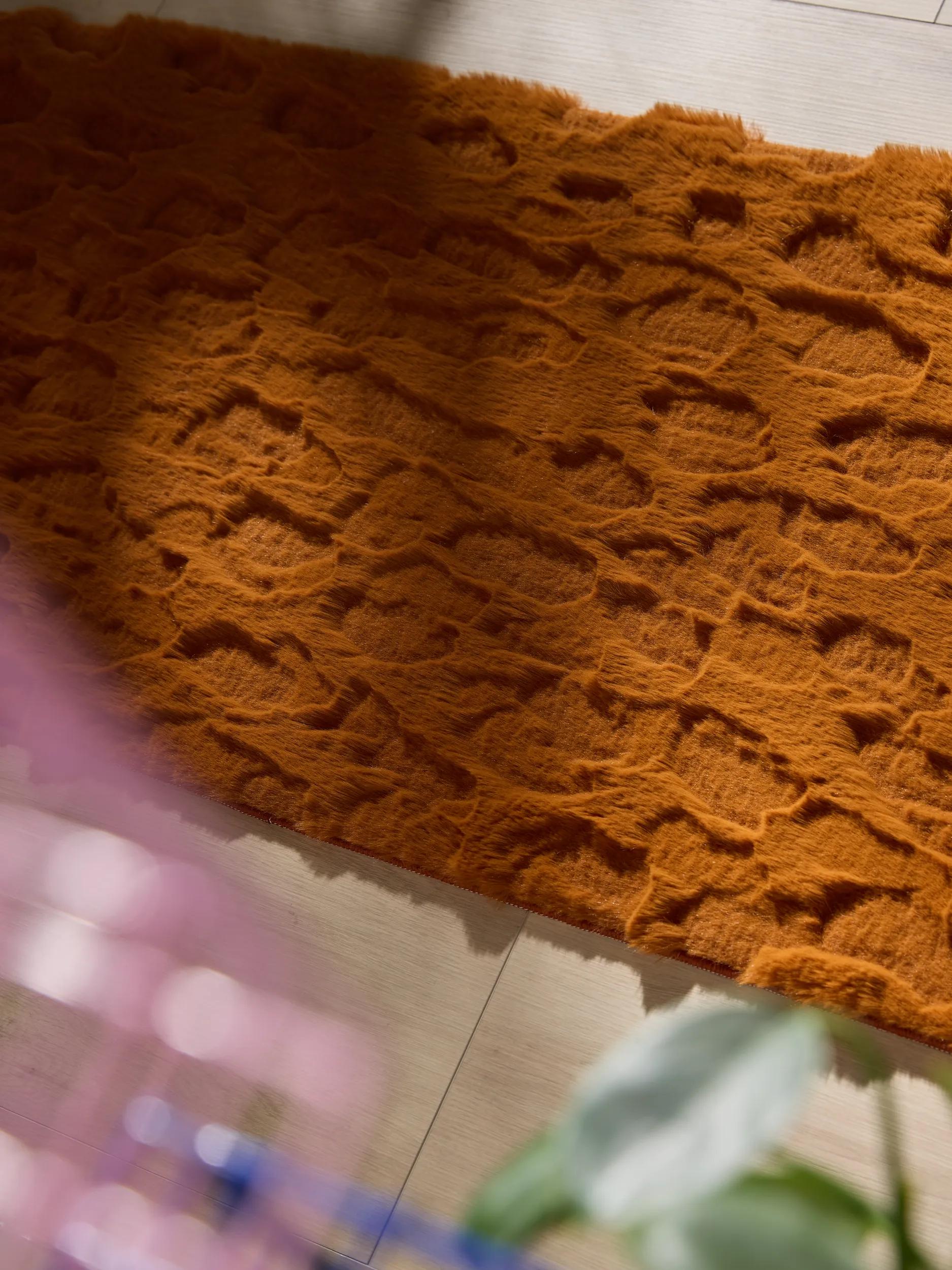 Tapis shaggy design texturé de couloir orange rouille 60x200 cm