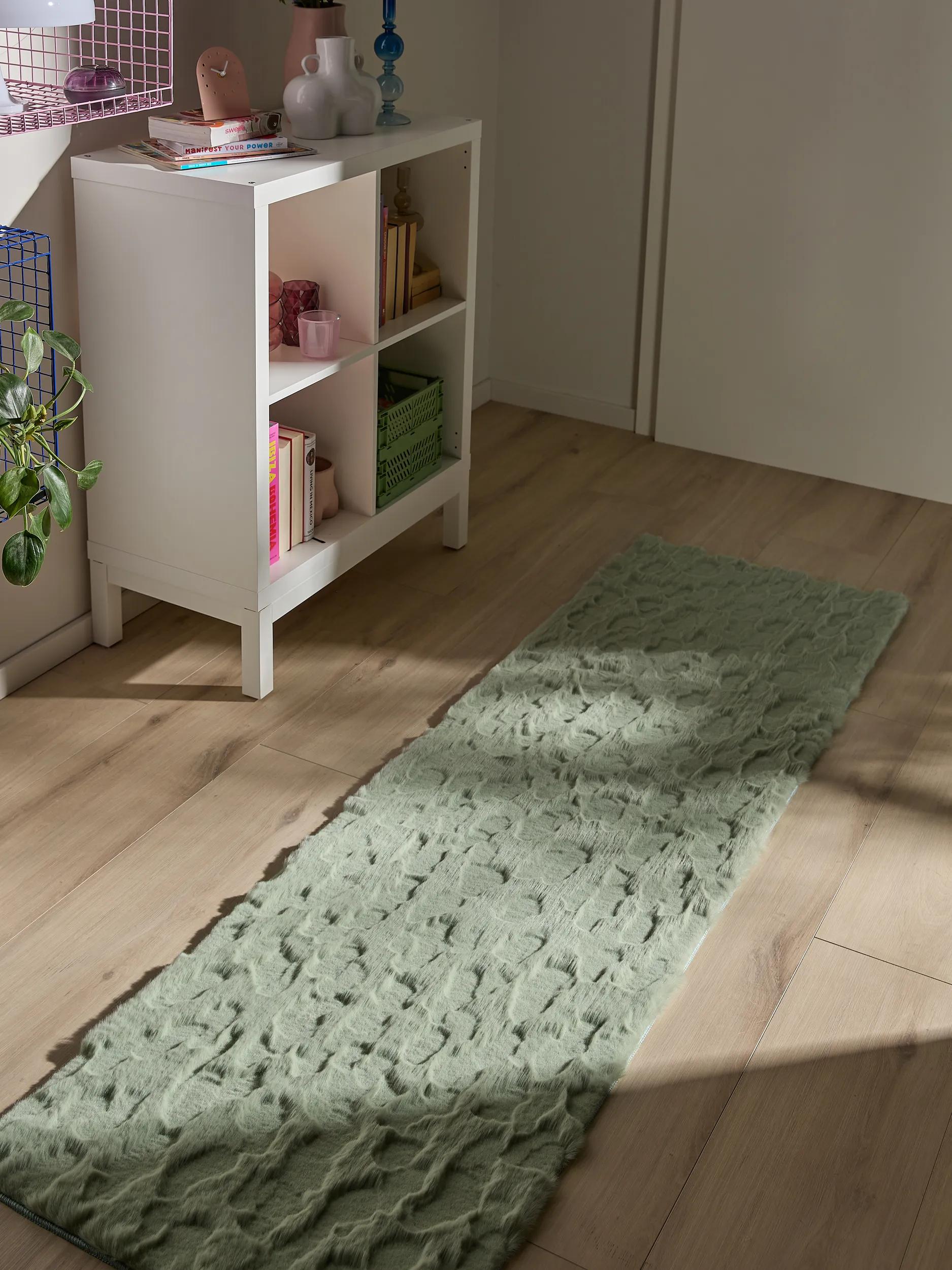 Tapis shaggy design texturé de couloir vert sauge 60x200 cm