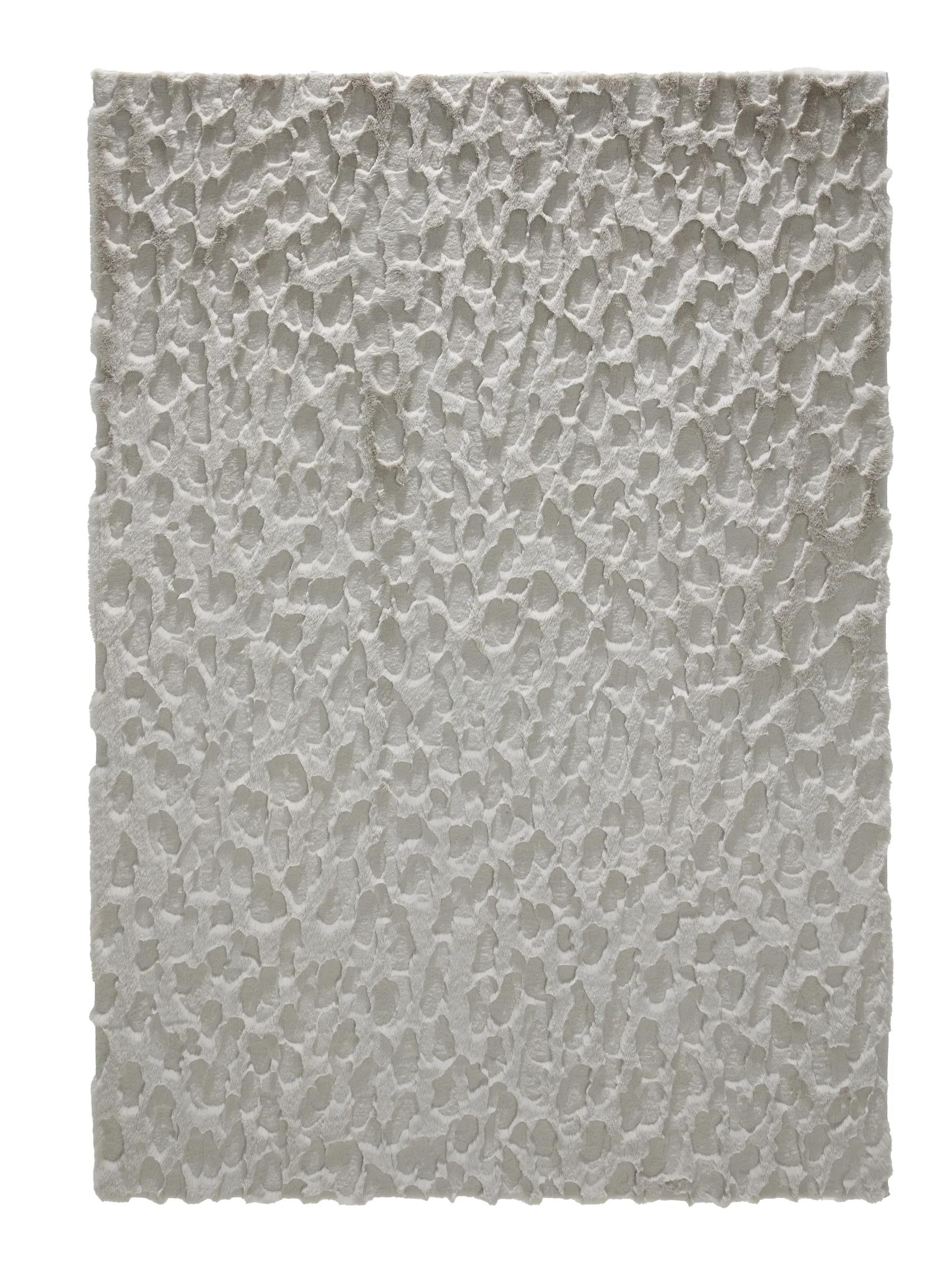 Au toucher, la densité des poils longs se révèle comme une caresse profonde : chaque pas s’enfonce dans une douceur moelleuse, la sensation d’un nuage texturé qui épouse la plante du pied. Cette variation soignée du relief magnifie le shaggy et souligne l’aspect texturé, tandis que la teinte gris clair diffuse une lumière douce, subtile et contemporaine dans la pièce.