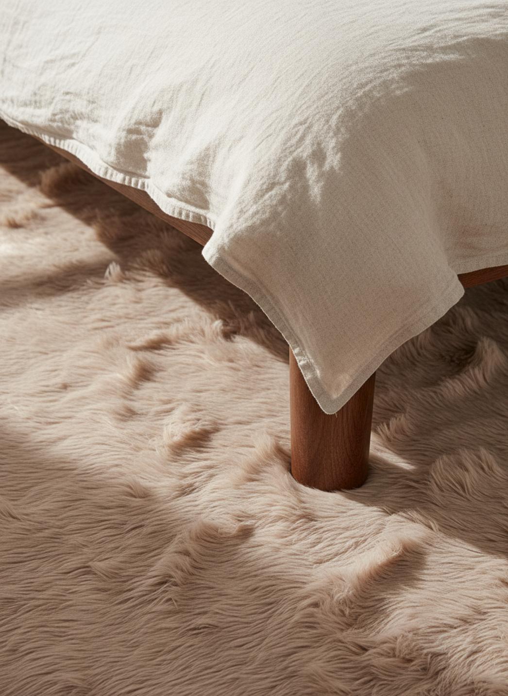 La sensation d’enveloppement va au-delà du toucher, elle agit sur l’acoustique. La densité des poils absorbe les bruits et ramène une sérénité feutrée aux pas, aux voix et aux instants calmes, rendant l’espace immédiatement plus chaleureux. L’équilibre entre épaisseur généreuse et tenue harmonieuse assure une présence diffuse mais structurée, qui soutient une décoration contemporaine ou un intérieur minimaliste sans détourner l’attention.
