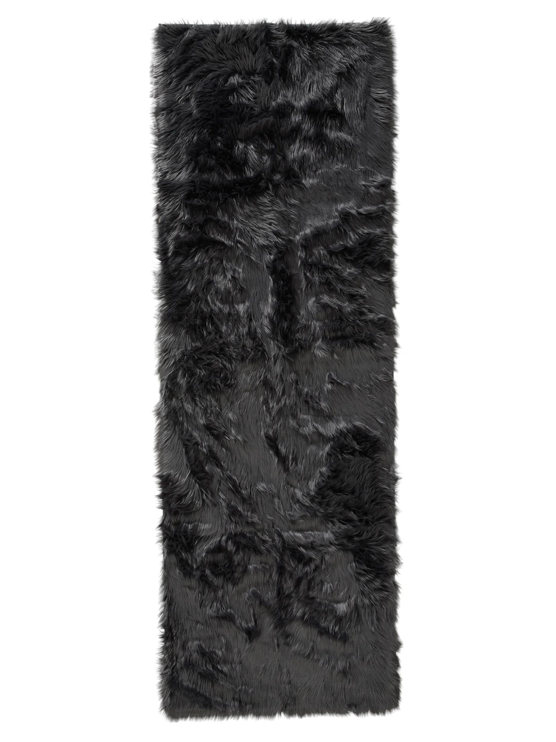Tapis shaggy effet fourrure descente de lit noir charbon 80x240 cm