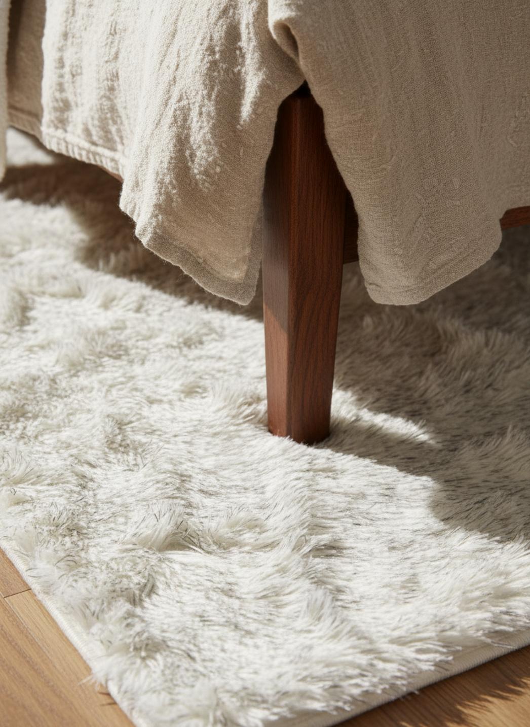 À première vue, la densité des fibres révèle une promesse de confort immédiat : un velouté profond, des brins qui se soulèvent puis retombent sous la main, l’écho d’un univers shaggy et d’une texture d’fourrure qui invite à la pause. La longueur des poils crée ce moelleux enveloppant, une sensation de nuage au sol qui appelle au retrait, au pied posé sans hâte, comme pour écouter le calme de la pièce.