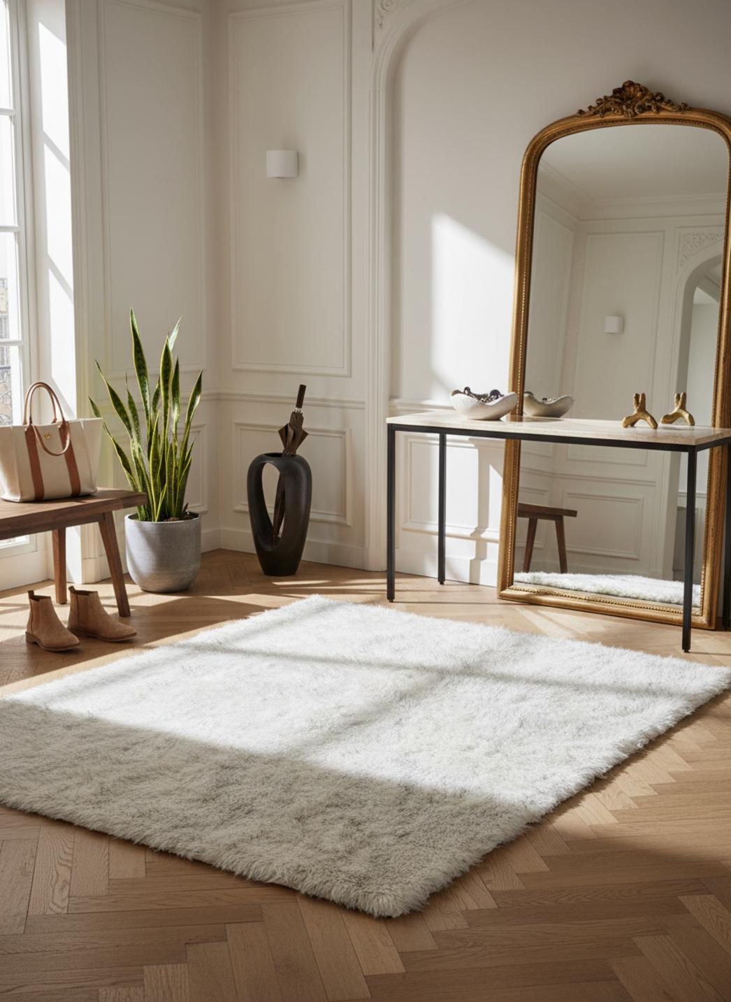 Pour une atmosphère encore plus lumineuse, découvrez aussi nos tapis shaggy blancs.