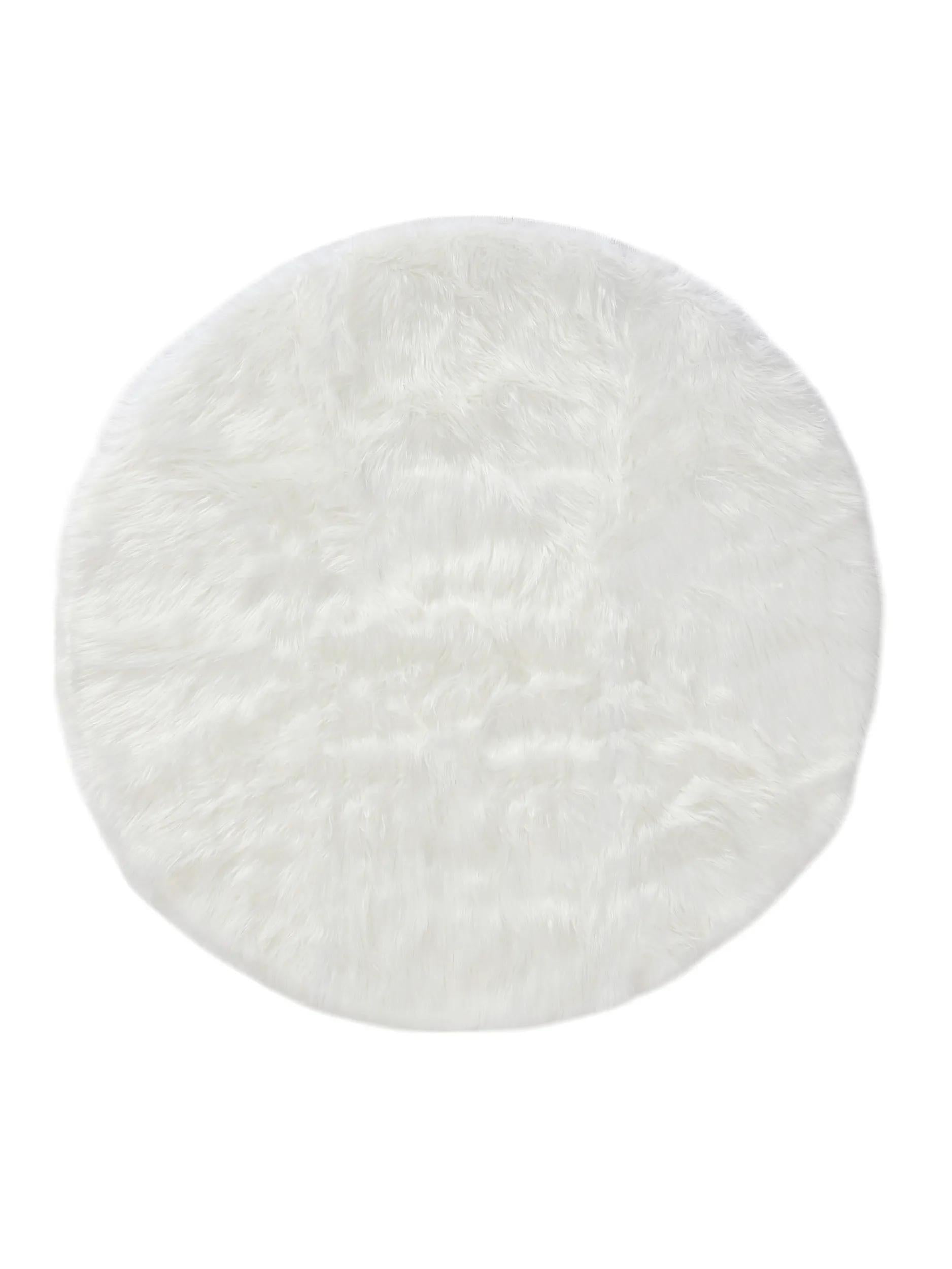 Tapis shaggy effet fourrure rond blanc 80 cm de diamètre