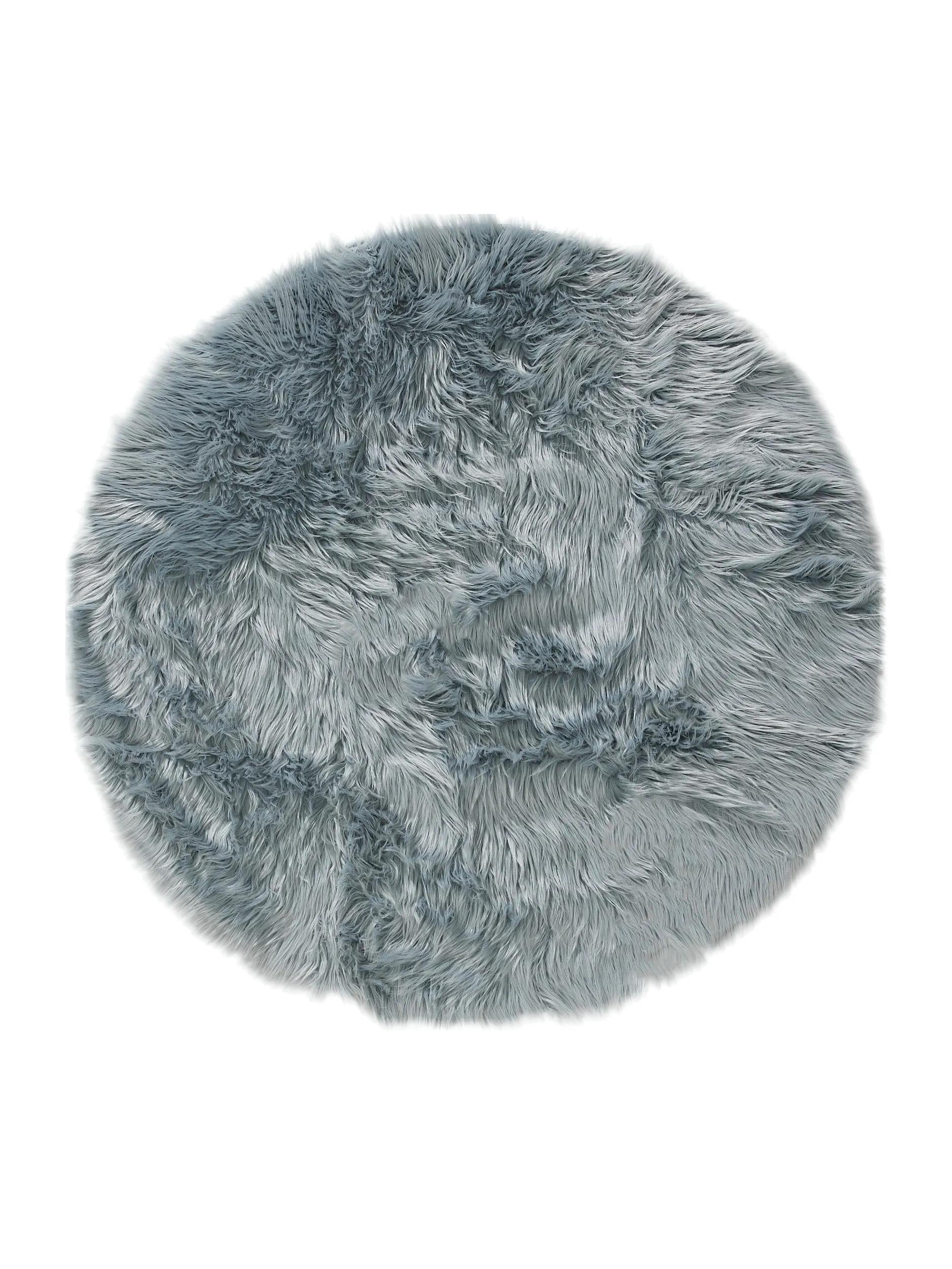 Tapis shaggy effet fourrure rond bleu 80 cm de diamètre