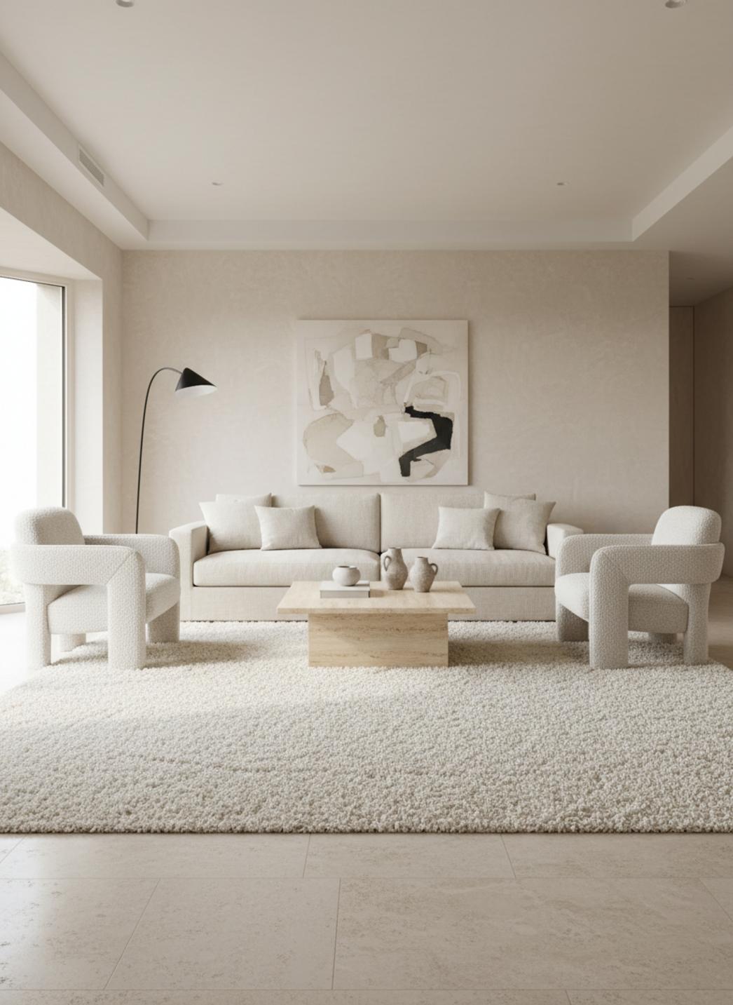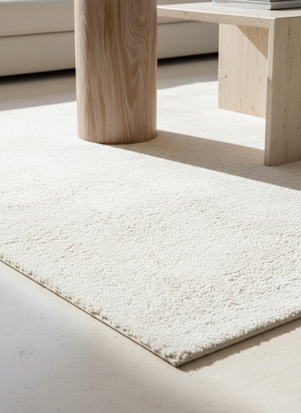 Sous les pas, la sensation est presque silencieuse, comme si le sol se couvrait d’un nuage : la profondeur des poils crée un effet enveloppant et chaleureux, amplifié par l’échelle généreuse de 250x350 cm qui donne à la pièce une présence calme et rassurante.