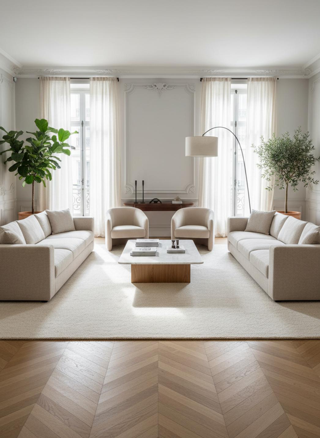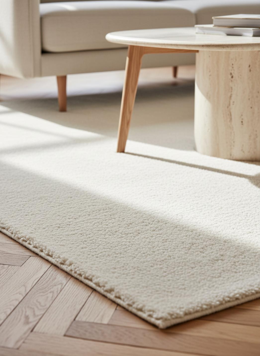 La teinte immaculée tient une place de choix dans l’harmonie intérieure : le blanc n’est pas seulement lumineux, il amplifie les contrastes de textures et donne au tapis une allure délicate, presque sculpturale, qui éclaire la pièce sans la dominer. Le blanc laisse respirer la décoration et met en valeur les matières environnantes, du bois chaud aux tissus naturels.