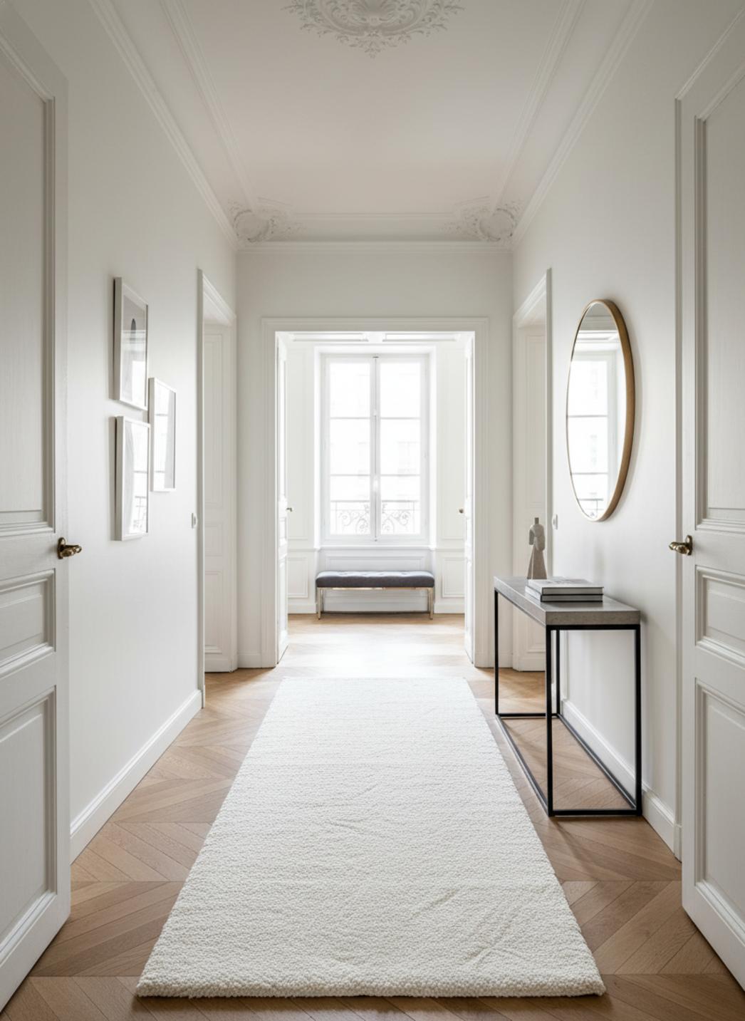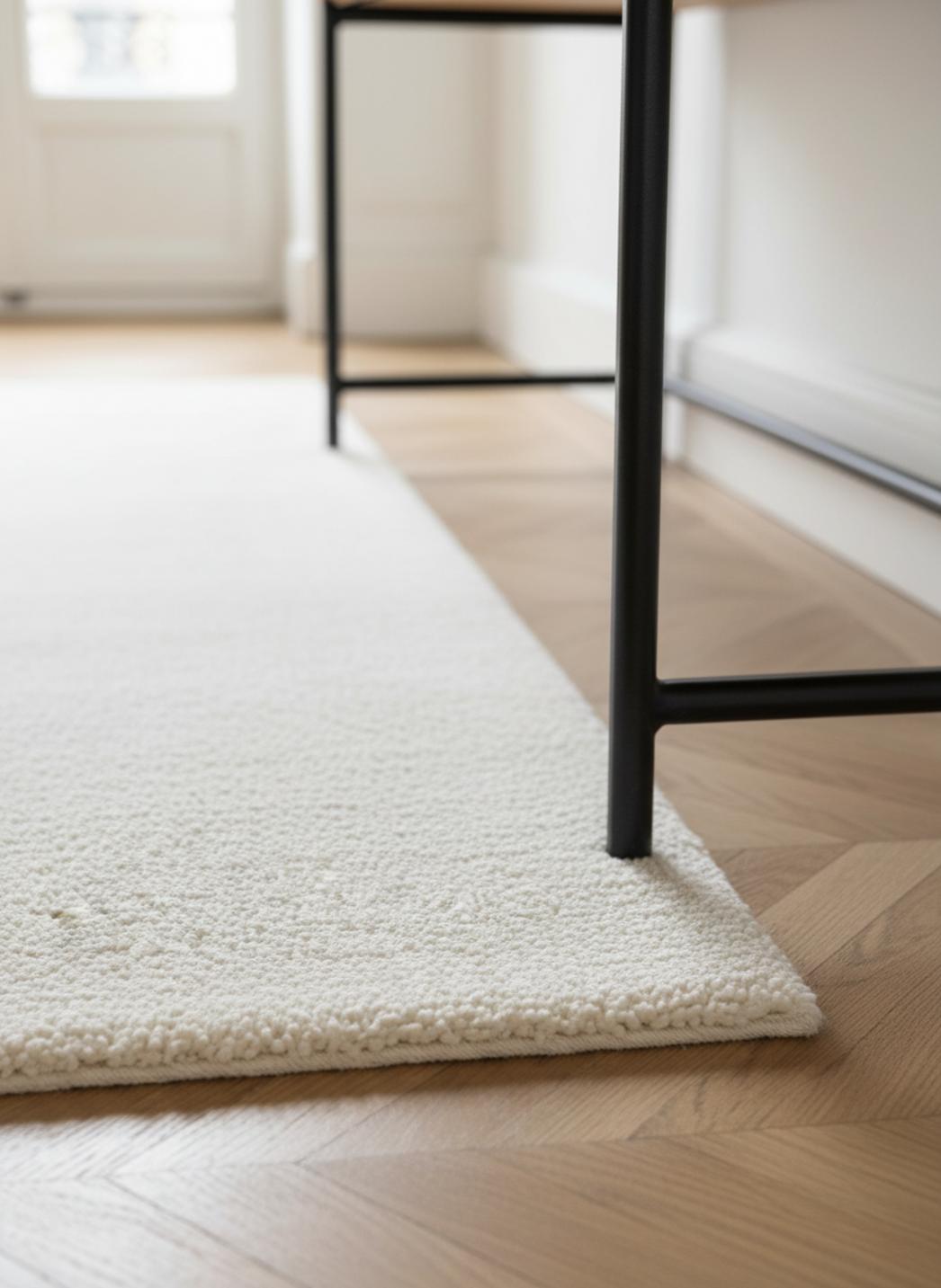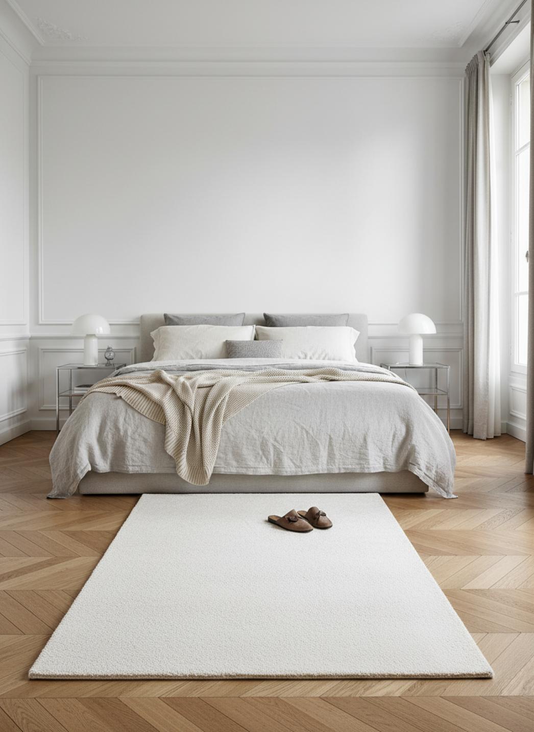 Son toucher, à la fois soyeux et dense, amplifie le confort tactile : marcher dessus, s’y asseoir, poser un panier de lecture devient un rituel. L’absorption sonore atténue les pas et les échos, rendant plus feutrées les allées et venues quotidiennes. La présence visuelle, généreuse sans excès, crée un cocon lumineux qui révèle la finesse des contrastes et la modernité d’une décoration minimaliste.