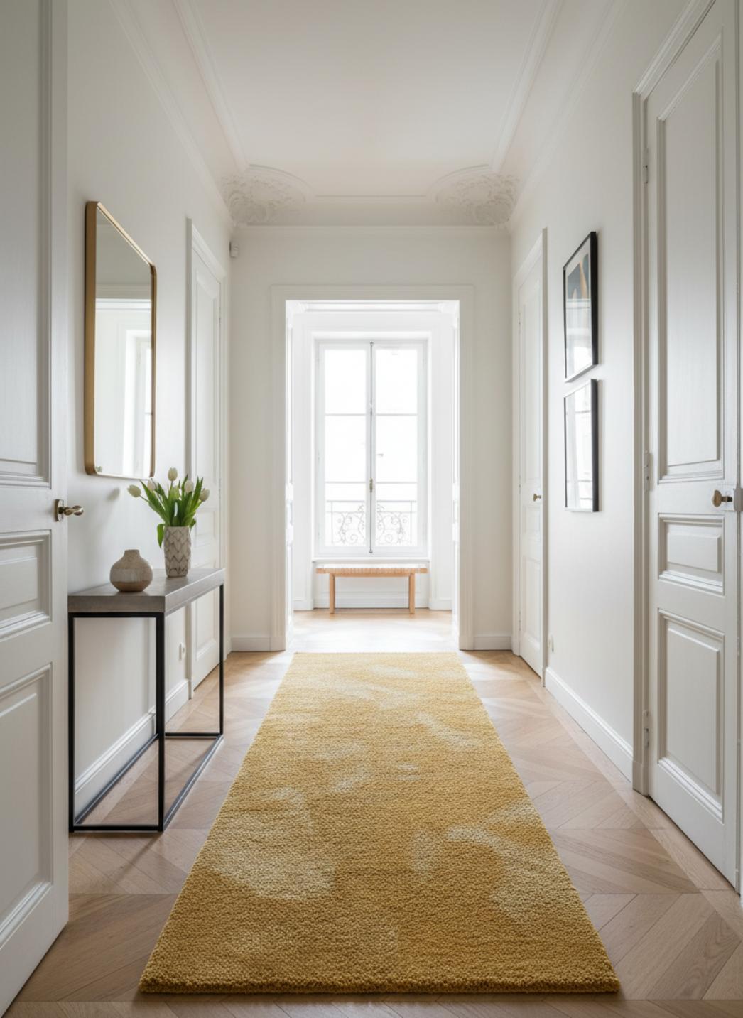 Pensé pour les trajets et les enfilades, il révèle une aptitude naturelle à adoucir les lignes longues : le format 80x250 cm s’inscrit avec élégance dans un couloir, modulant le flux des pas et apportant un confort ininterrompu. La présence d’un tapis ainsi dimensionné partage l’espace, structure la circulation et crée un point focal où s’installent la sérénité et l’harmonie, tout en préservant la fluidité des déplacements.