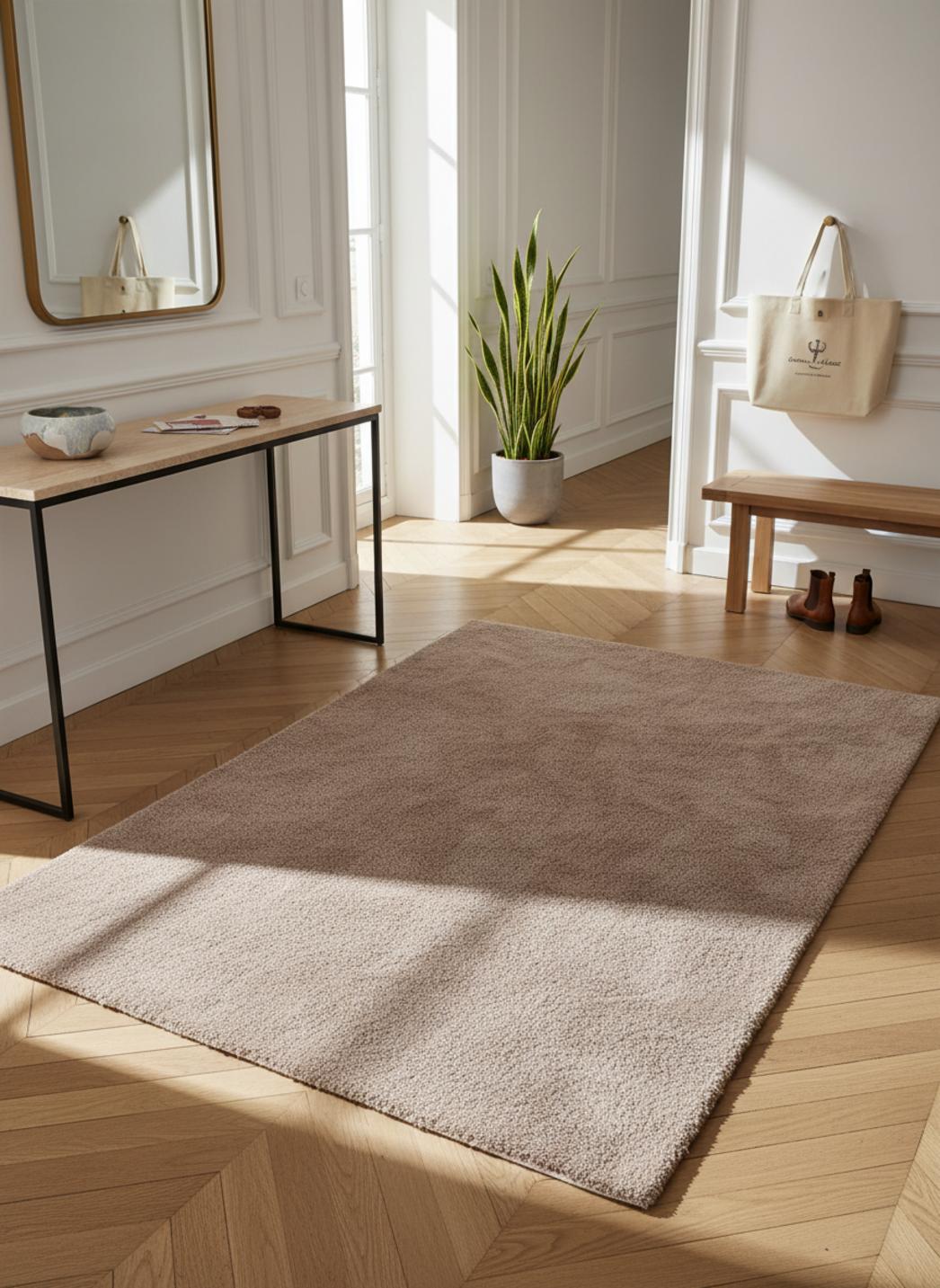 Pensé pour instaurer une atmosphère contemporaine et minimaliste, ce tapis propose une présence mesurée qui transforme un couloir, une chambre ou un salon en lieux plus accueillants, sans surcharge décorative. L’effet visuel est celui d’un élément qui réchauffe l’espace et structure le regard grâce à sa matière généreuse.