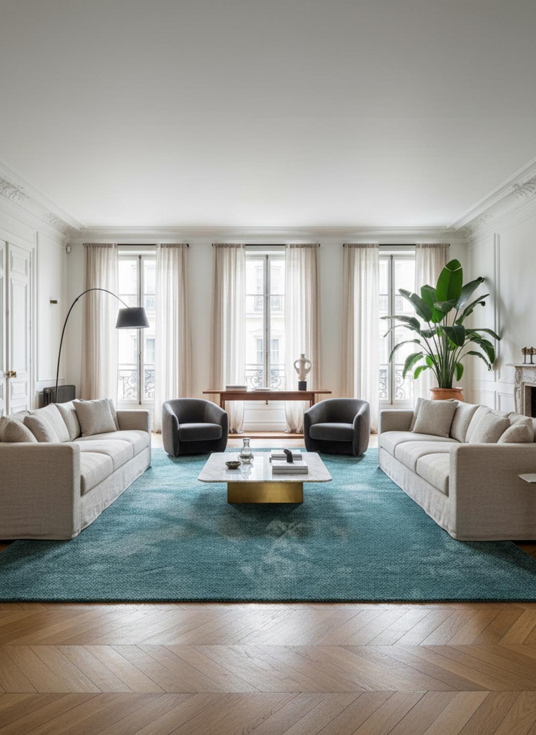 Pensé à grande échelle, ce modèle en format 200x300 cm trace une scène conviviale, capable de structurer un salon ou d’habiller un espace généreux avec élégance. Son allure se lit comme une invitation au ralentissement, tandis que les qualités sensorielles — densité, moelleux et chaleur sous les pieds — offrent une signature confortable et durable. Le rendu chromatique de la teinte turquoise apporte une note contemporaine qui s’accorde avec des ambiances sobres ou colorées, et la finition épais accentue le sentiment de luxe discret propre aux pièces cocon.