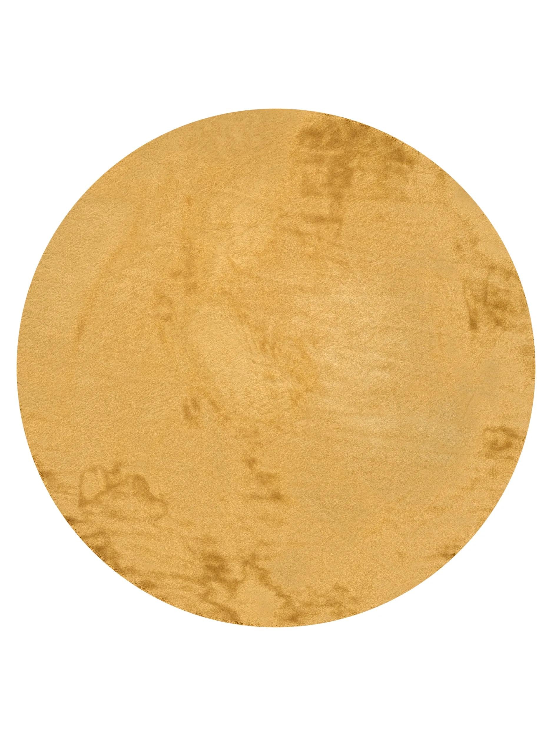 Tapis shaggy fausse fourrure rond jaune moutarde 120 cm de diamètre