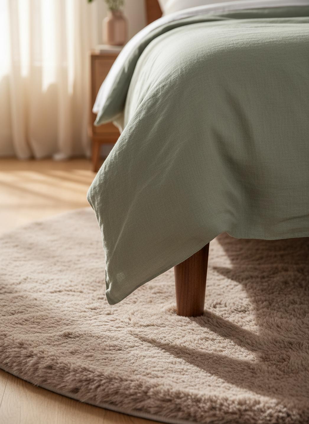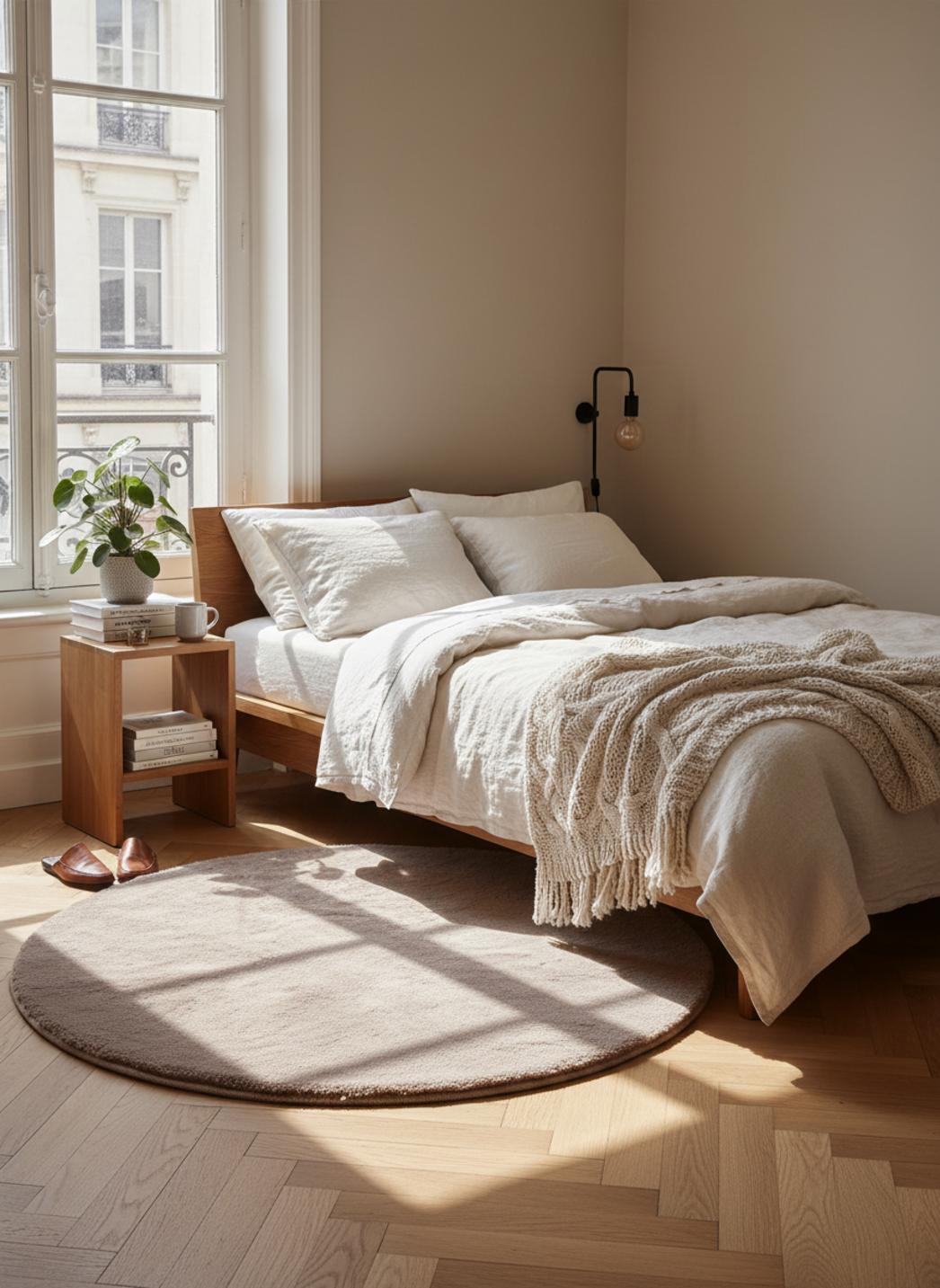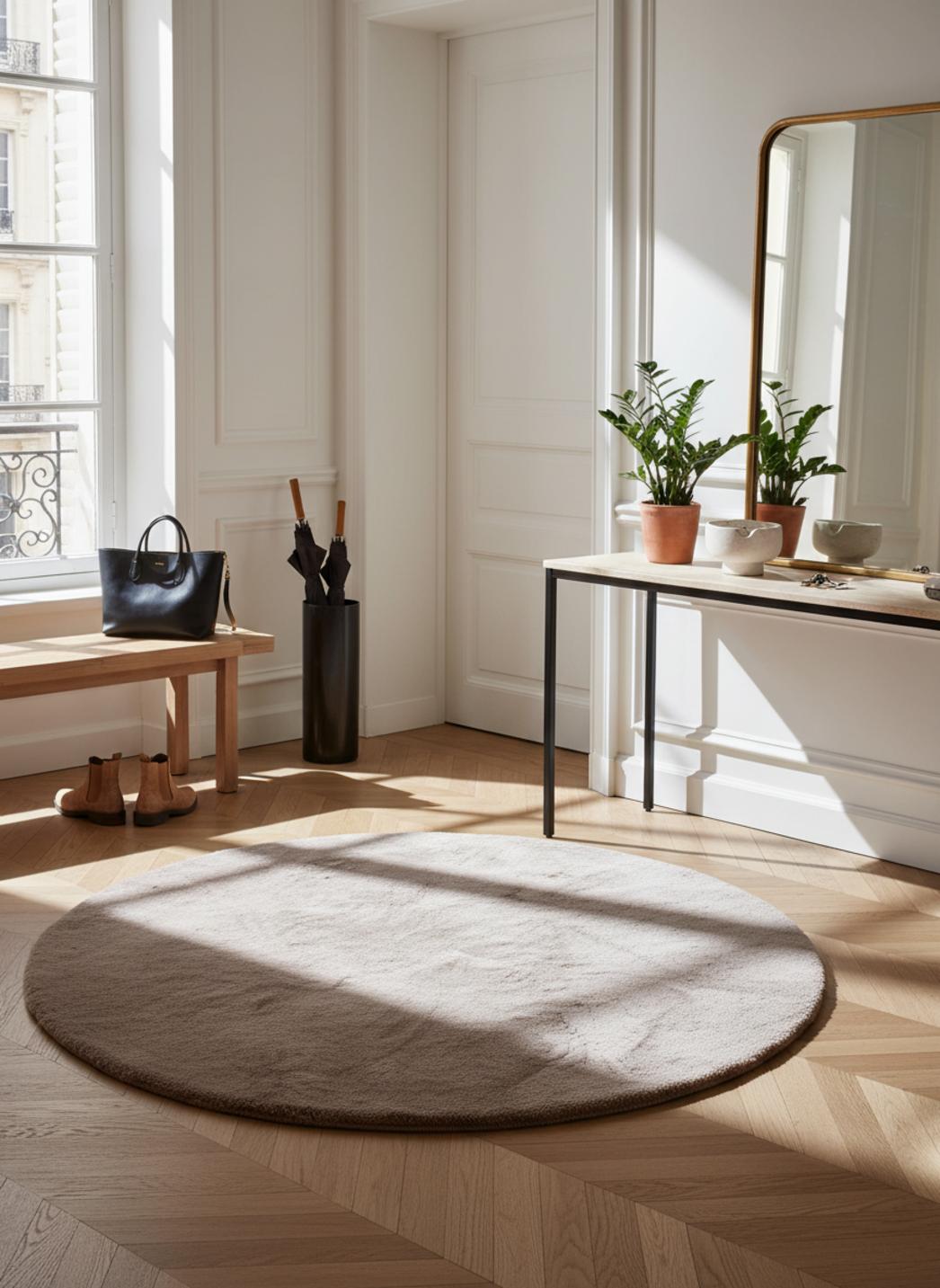 En jouant avec la rondeur, la pièce gagne une note de cocon et une douceur visuelle immédiate : la forme rond invite au regroupement, au cocooning, et pose un geste décoratif qui adoucit les lignes de mobilier rectilignes. L’œil se pose, ralentit, et l’ambiance gagne en intimité, transformant un simple sol en scène propice aux rituels calmes, du réveil paresseux au moment de lecture en fin de journée.