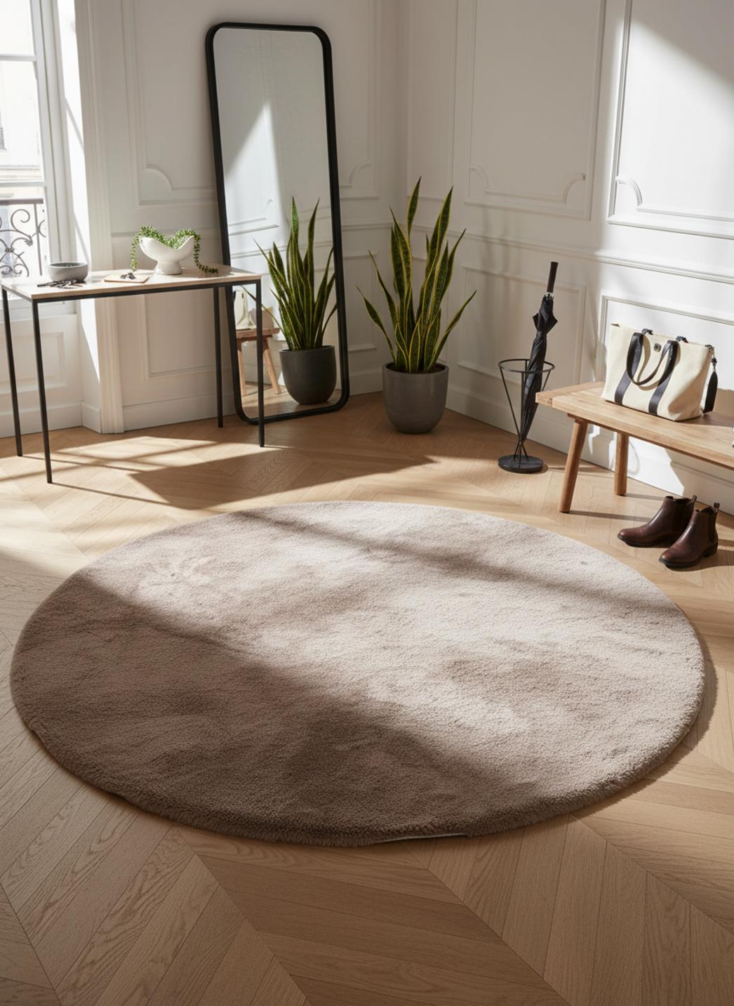 Tapis shaggy fausse fourrure rond taupe 80 cm de diamètre