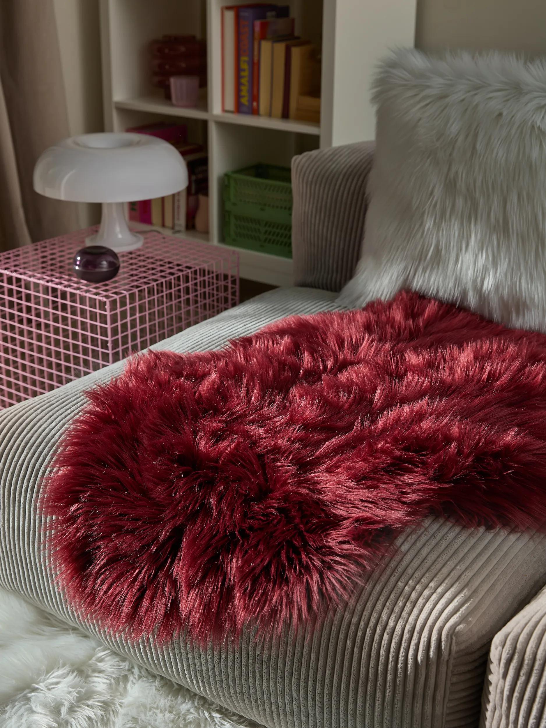 Tapis shaggy forme fausse fourrure bordeaux 60x90 cm