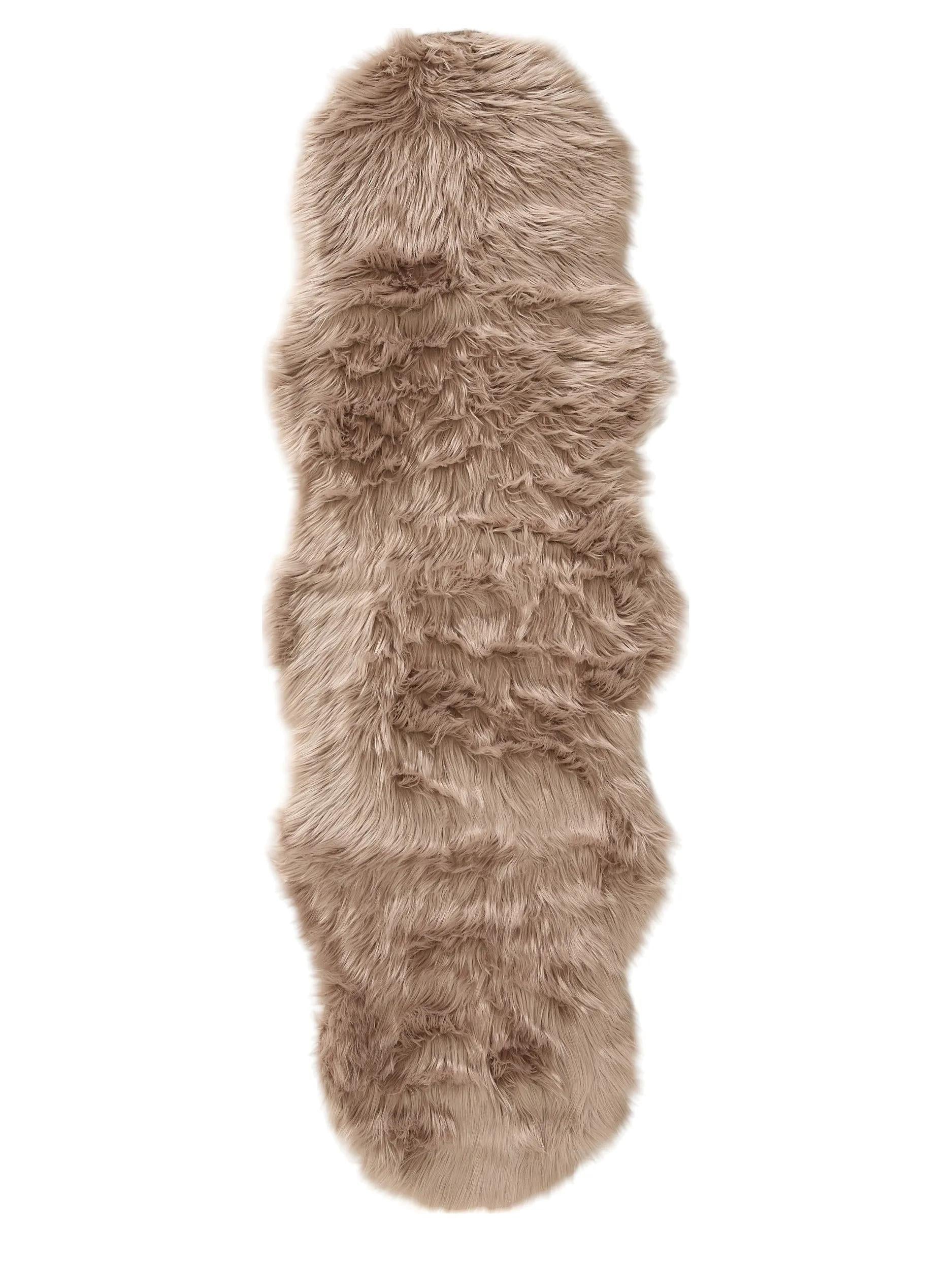 Tapis shaggy forme fausse fourrure descente de lit beige 60x180 cm