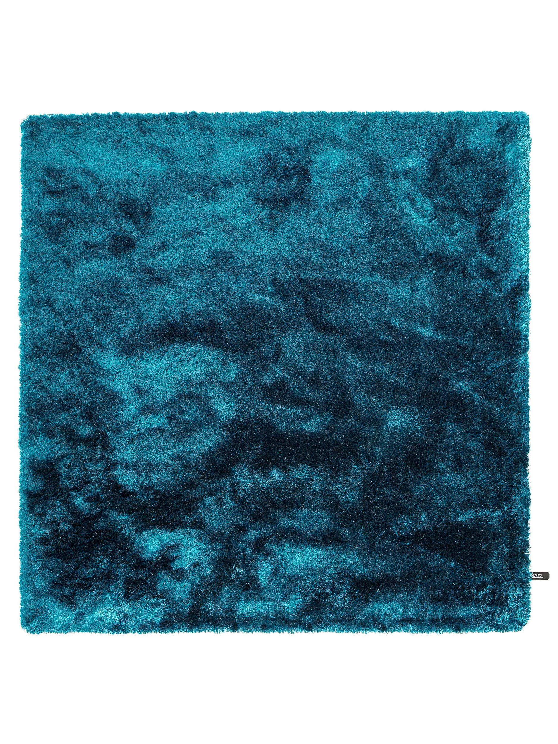 Tapis shaggy fourrure carré bleu pétrole 60x60 cm