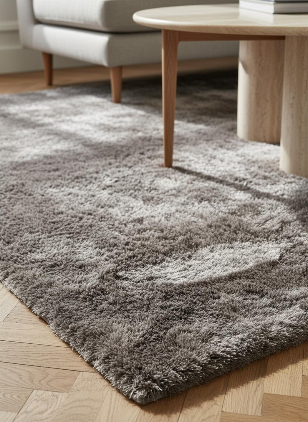 Sous vos doigts, une mer de poils longs se déploie : la signature shaggy et l’effet fourrure conjuguent une douceur profonde et un moelleux qui retient le regard. La densité généreuse crée une sensation enveloppante, comme un nuage posé au sol, offrant immédiatement une chaleur délicate sous les pieds et une caresse continue à chaque pas.