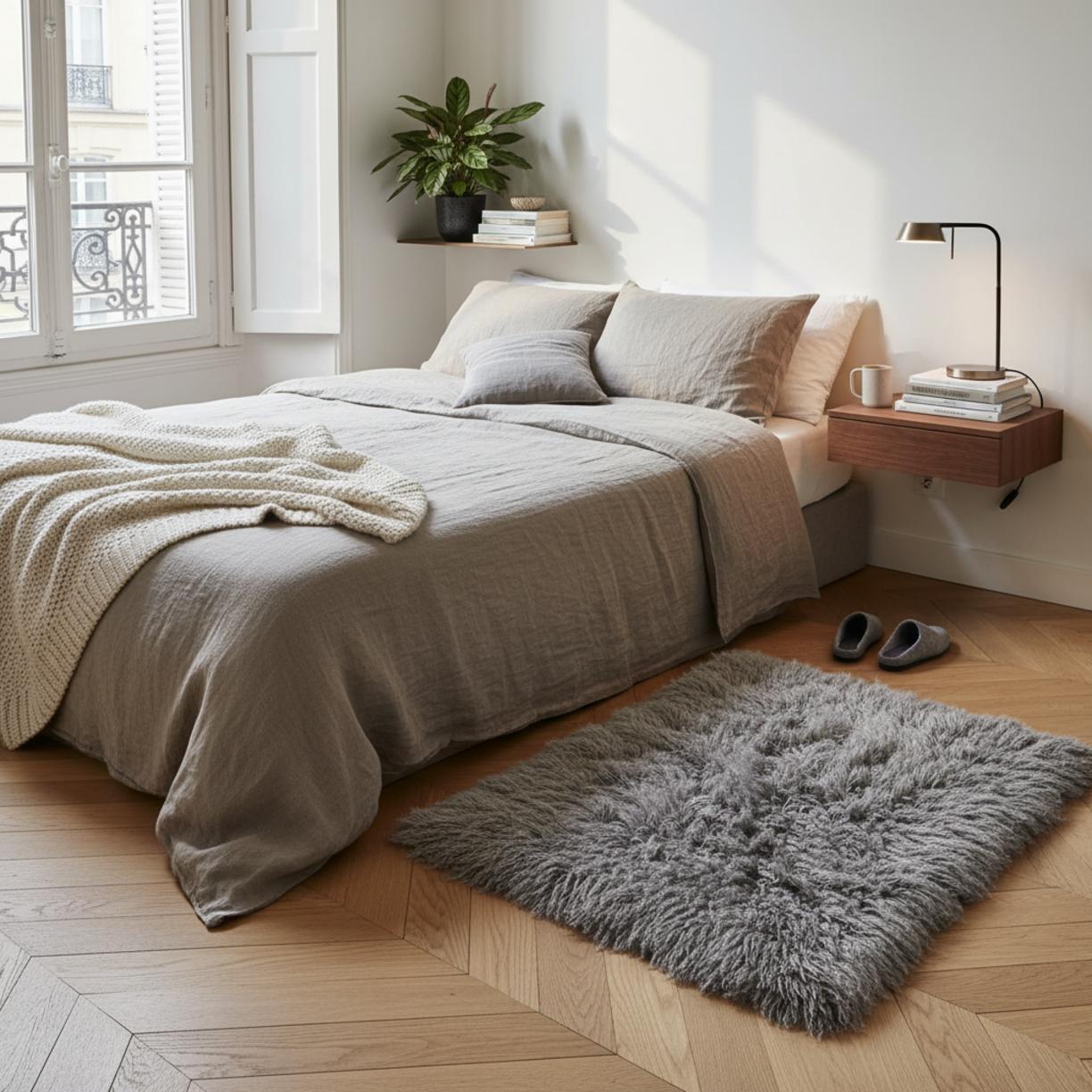 La nuance travaillée invite à une atmosphère douce et feutrée : le gris propose un relief ton sur ton qui se marie aussi bien aux intérieurs hygge qu’aux décors plus contemporains, apportant une élégance neutre et adaptable. Posé dans un salon, il réinvente la scène en ajoutant une couche de chaleur tactile ; dans une chambre, il devient le rendez-vous attendu des réveils matinaux.