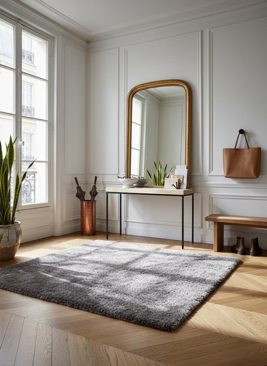 Chaque pas est adouci par une densité soigneuse et un feutrage qui absorbe le bruit, conférant une chaleur discrète sous les pieds et réduisant les échos du séjour. L’effet enveloppant crée une présence visuelle apaisante et sculpturale, un point d’ancrage élégant qui respecte une esthétique contemporaine et minimaliste sans jamais alourdir l’espace.