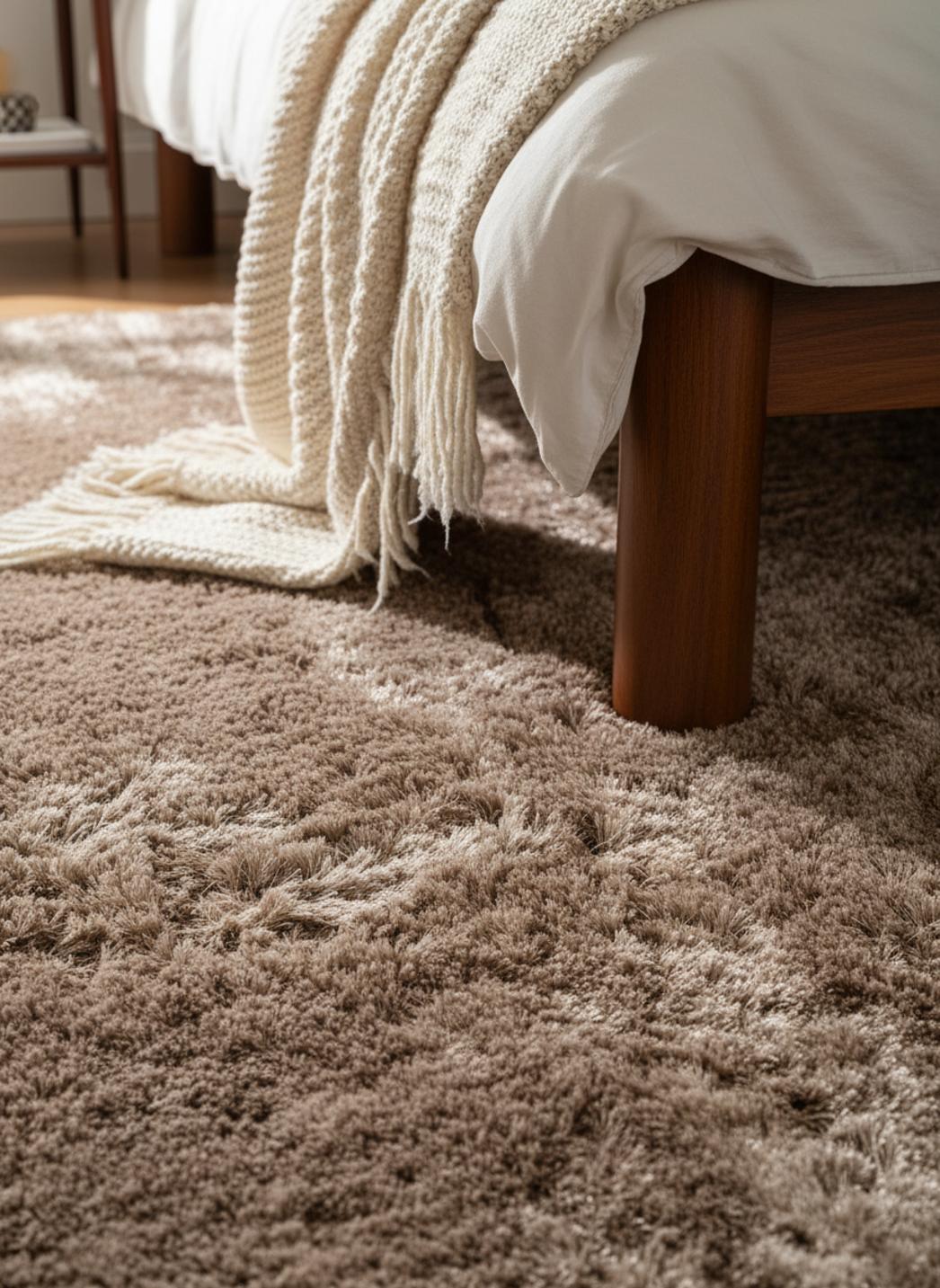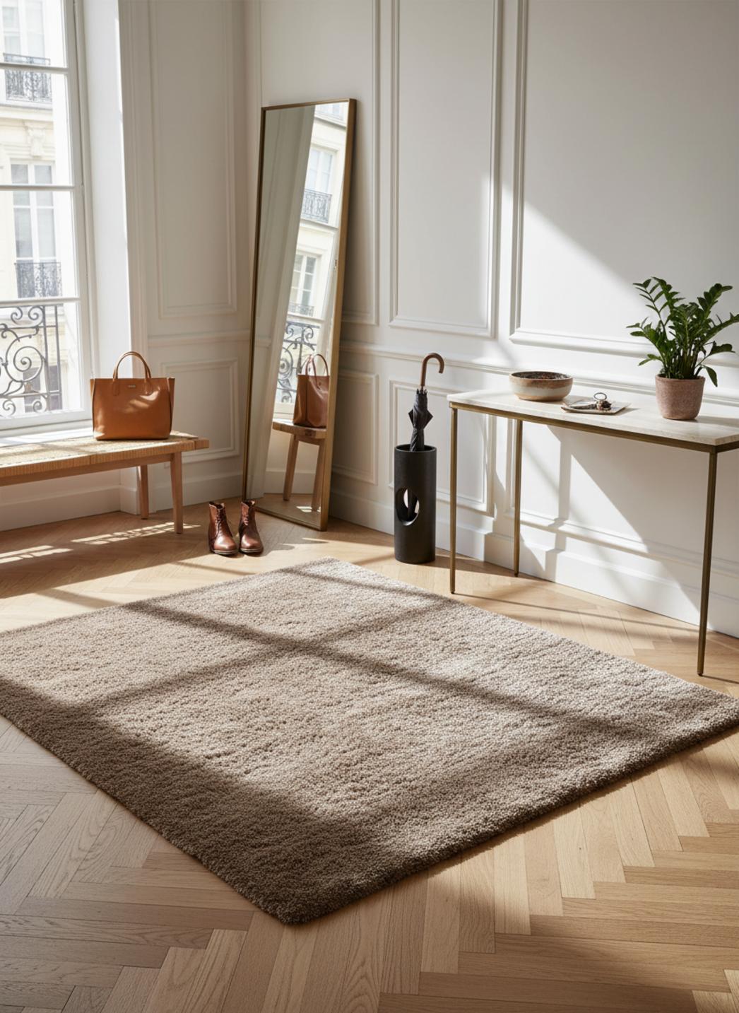 Sous les pas, une caresse durable invite à la lenteur : le voile des shaggy révèle des fourrure généreuses et des poils longs qui s’écartent et se referment comme une nuée, offrant une douceur profonde et moelleuse. La densité du tapis se perçoit au premier contact, un matelas discret qui enveloppe le pied et transforme le geste quotidien en un rituel de confort.