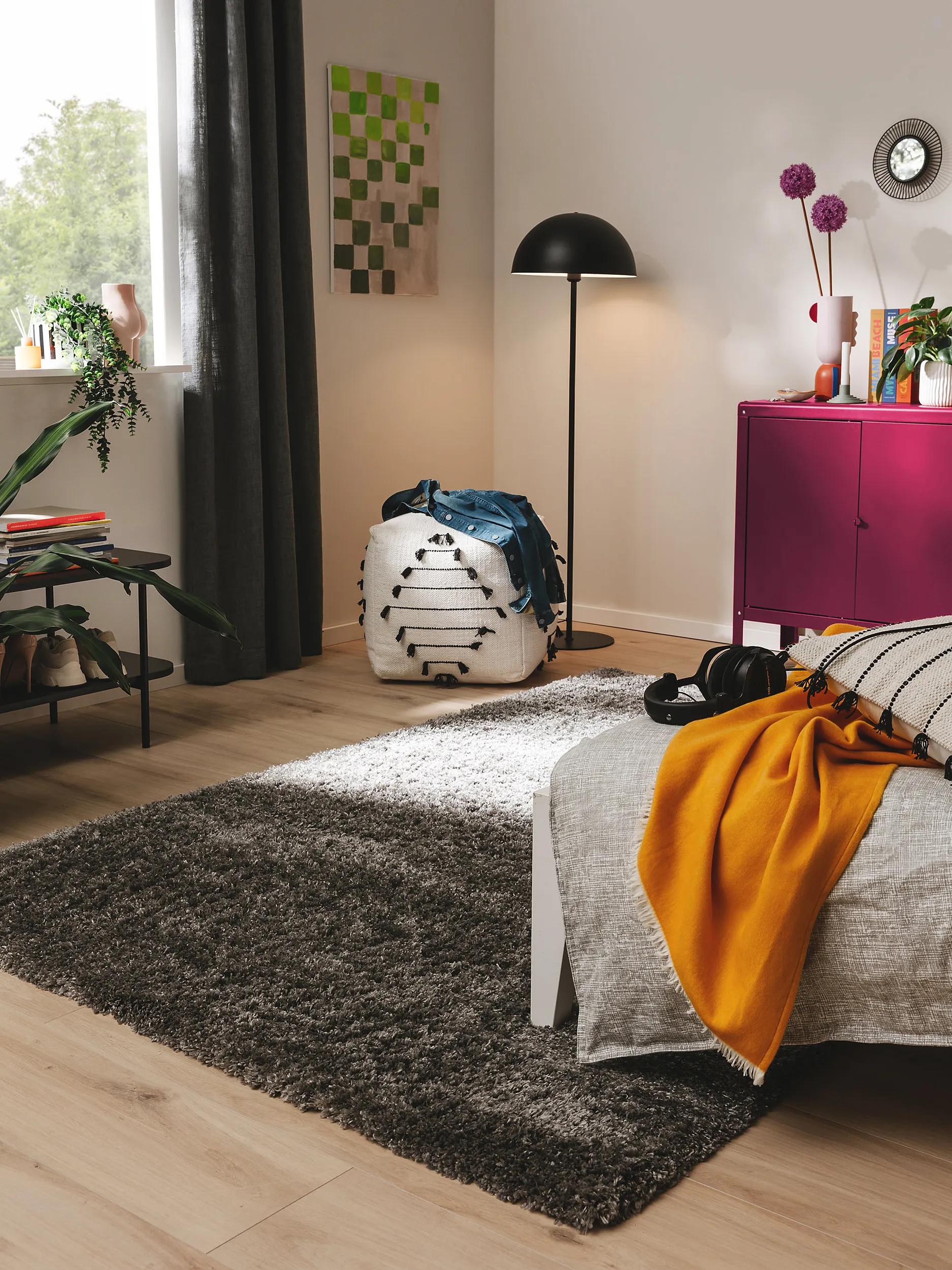 Pour varier autour de nuances plus minérales, la collection de tapis shaggy gris propose d’autres ambiances douces.