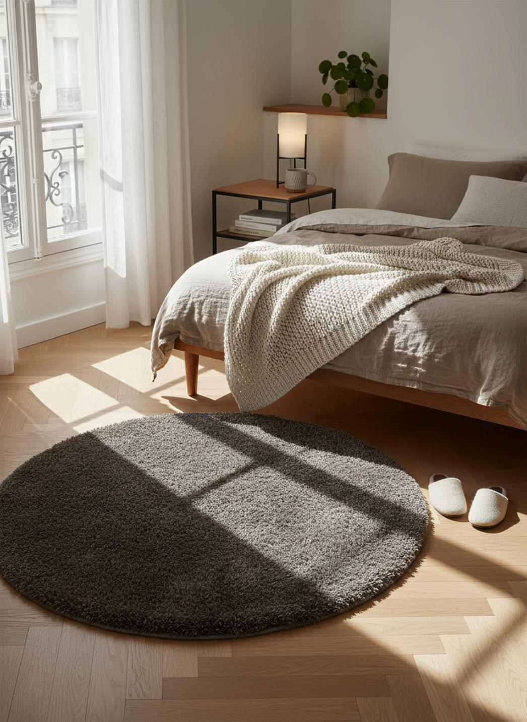 Dans un coin lecture ou au centre d'un salon, la rondeur amplifie la douceur visuelle : un effet cocon qui invite à la pause et à la lenteur. La forme rond donne une impression d'équilibre organique, adoucit les lignes et crée une bulle chaleureuse idéale pour une ambiance hygge, contemporaine ou minimaliste.