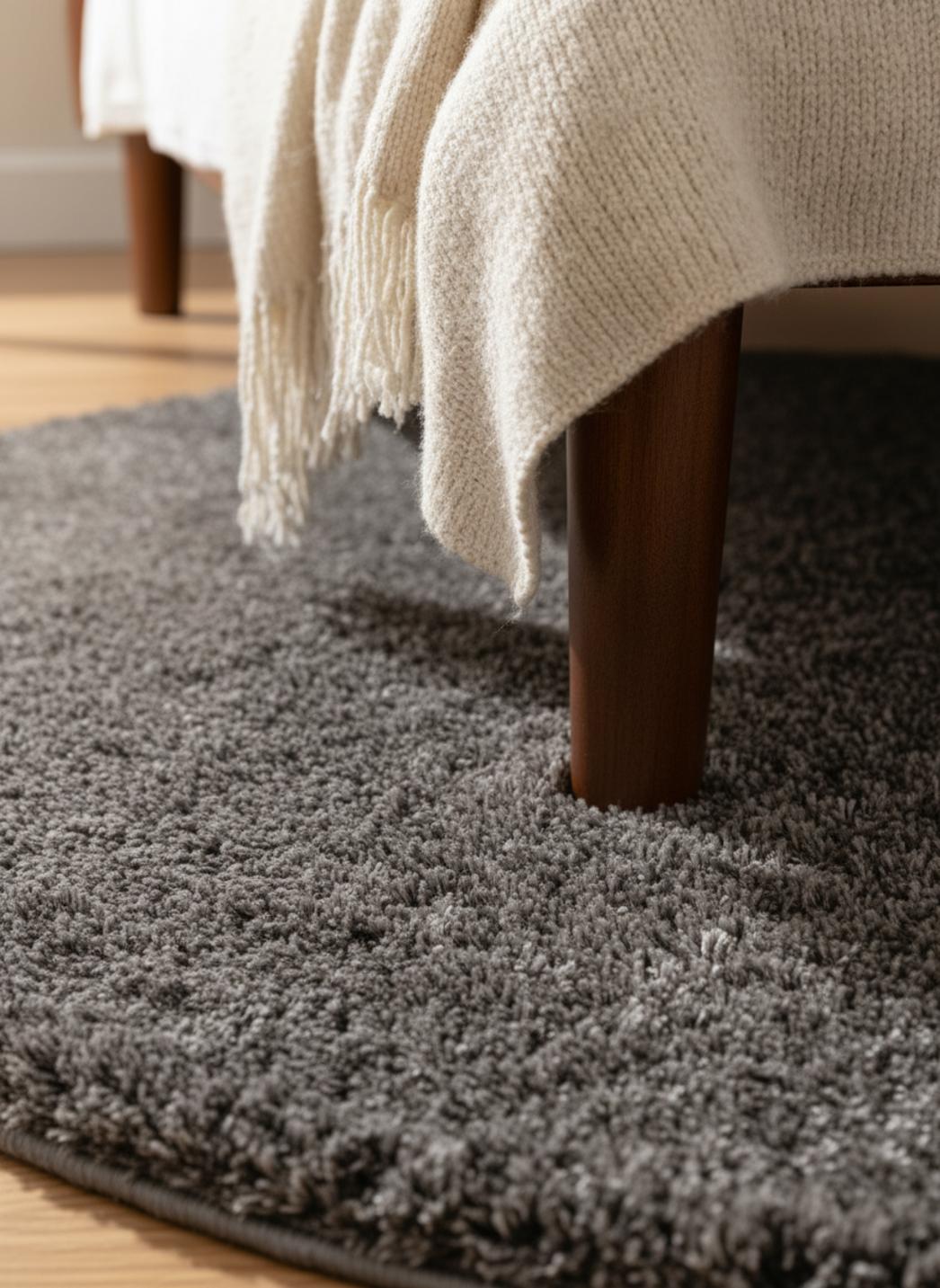 Cette matière dense agit aussi comme un filtre sonore ; l'épaisseur généreuse absorbe les petits bruits du quotidien et restitue une atmosphère plus feutrée. La présence visuelle se conjugue à une chaleur sous les pieds qui rassure dès les premières minutes, offrant à la fois confort et caractère décoratif dans une chambre ou un séjour.