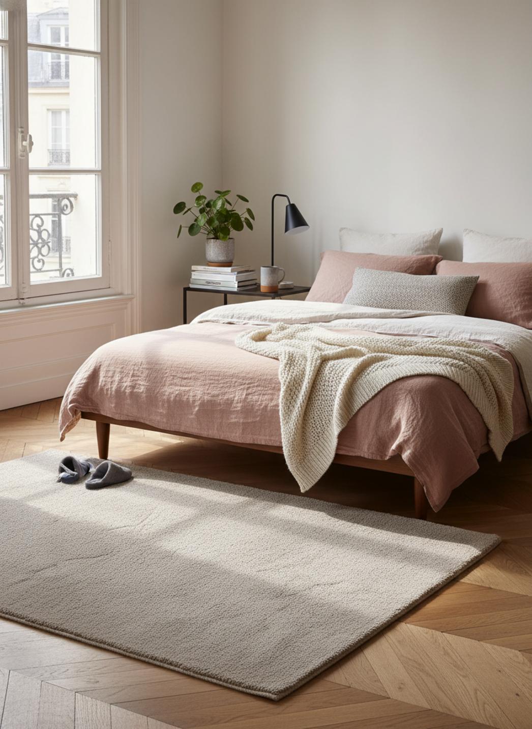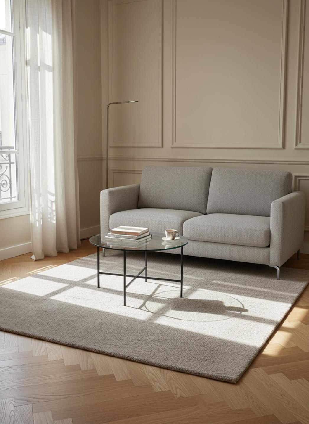 Ce tapis incarne l’ambiance cosy et hygge recherchée aujourd’hui, tout en restant contemporain et épuré. Il agit comme un élément de décor essentiel, apportant chaleur, texture et une sensation enveloppante qui invite à ralentir. La palette neutre laisse libre cours à la création d’ambiances, depuis le minimalisme apaisé jusqu’à une décoration plus chaleureuse et personnelle.