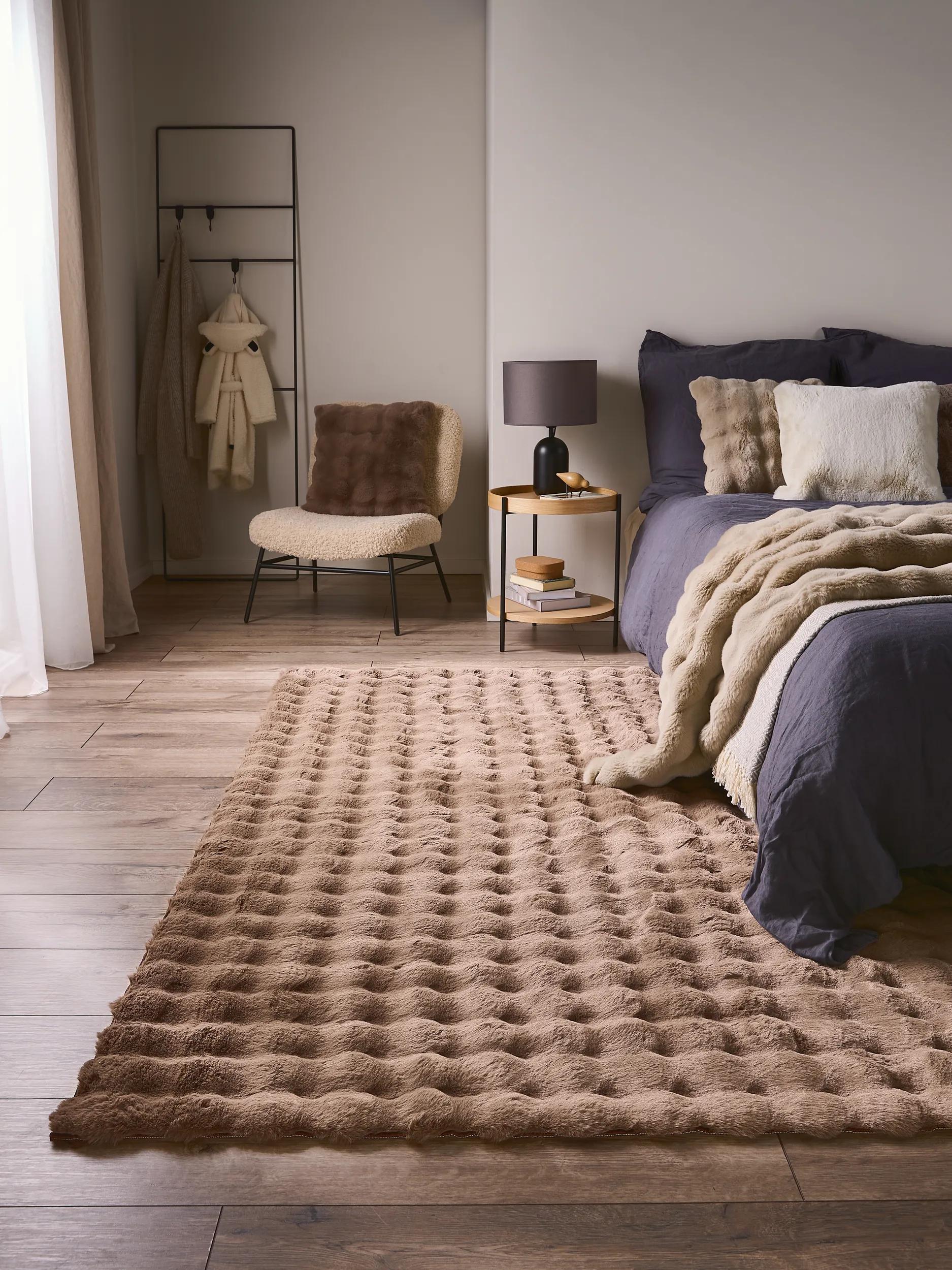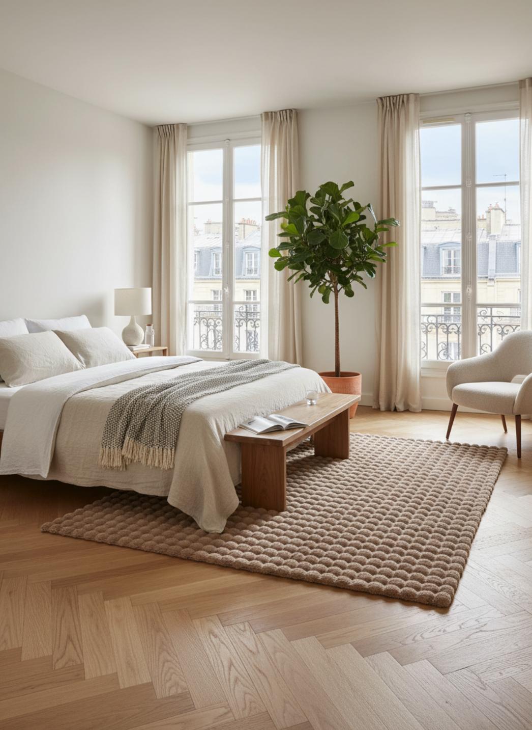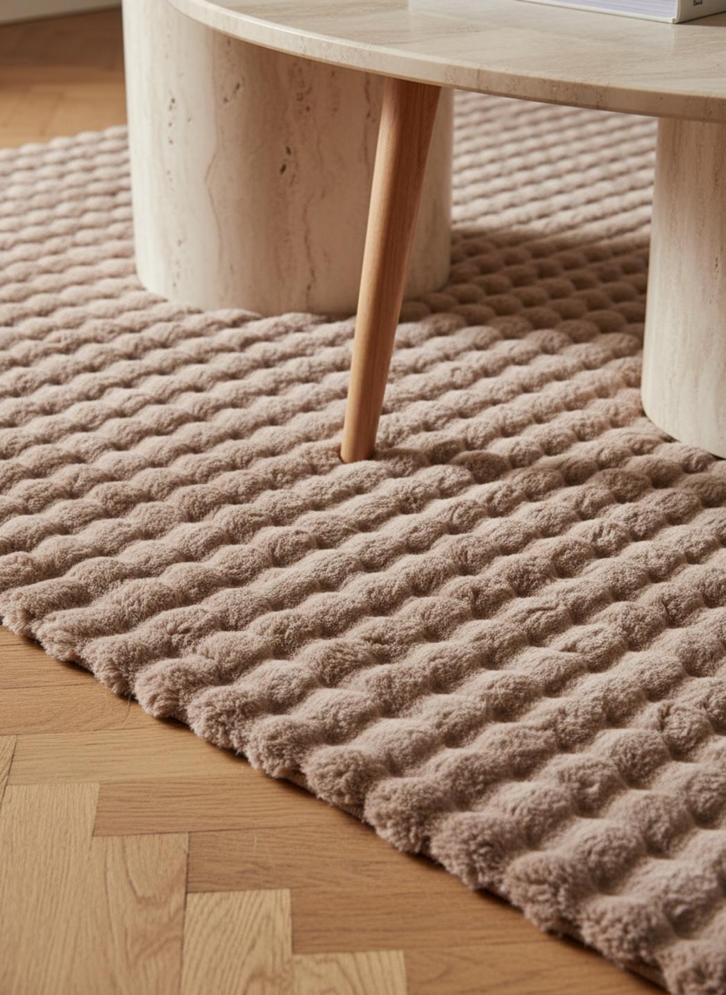 Quand on s’assoit près d’un fauteuil ou qu’on pose une tasse sur la table basse, la chaleur rend l’instant plus intime. La densité généreuse offre un véritable confort sous les pieds, un écrin qui isole du froid et du bruit, parfait pour composer une ambiance cosy, hygge et contemporaine. L’objet devient un point d’ancrage décoratif capable de transformer un salon, d’habiller une chambre ou de délimiter un coin lecture avec une élégance feutrée.