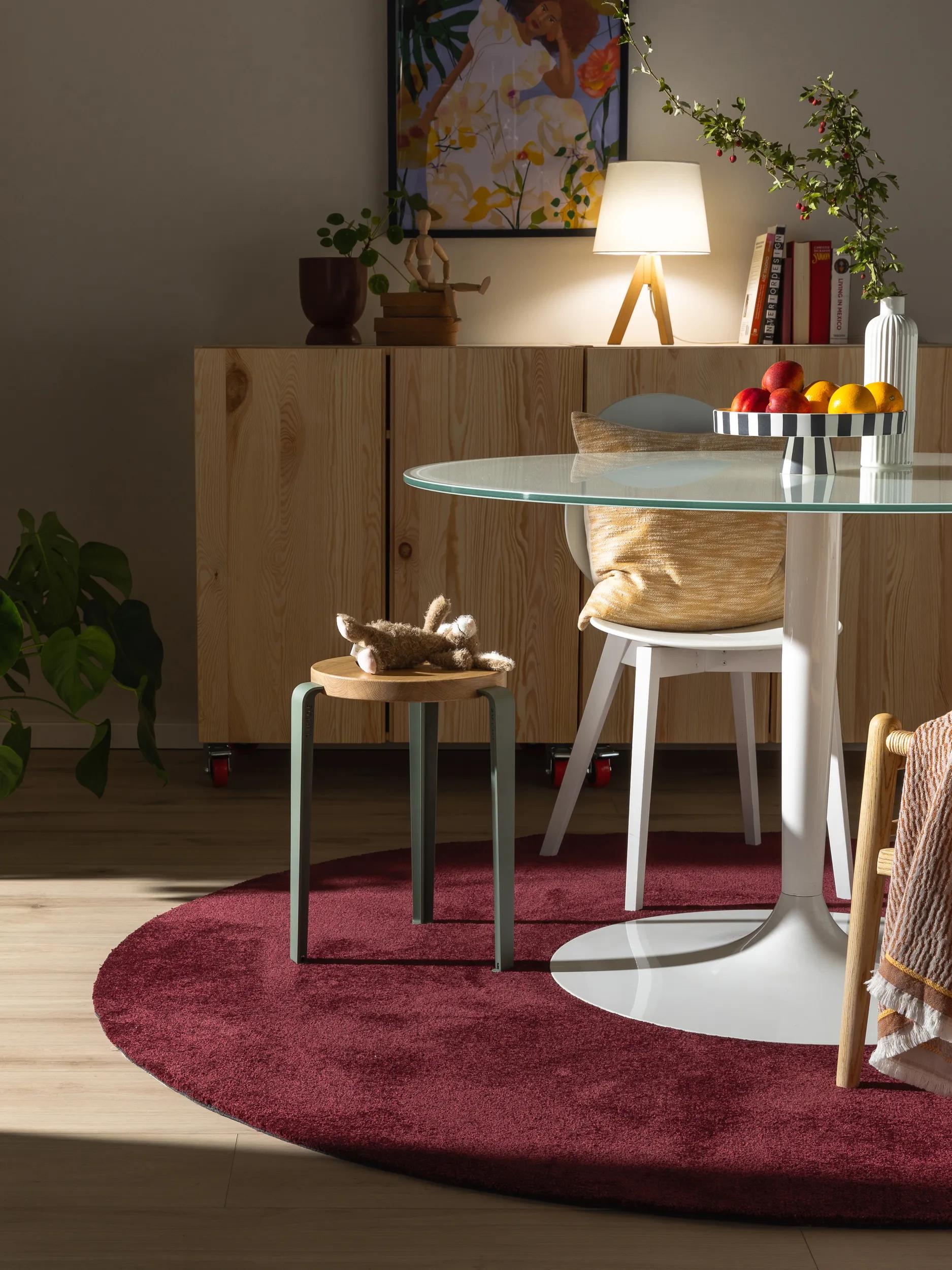 La teinte choisie révèle une chaleur veloutée : le bordeaux installe une note riche et enveloppante, à la fois contemporaine et intemporelle, capable de structurer une décoration minimaliste ou d’accentuer une ambiance hygge. Sa profondeur chromatique capte la lumière, souligne les lignes du mobilier et crée une bulle chaleureuse autour d’un fauteuil ou d’une table basse.