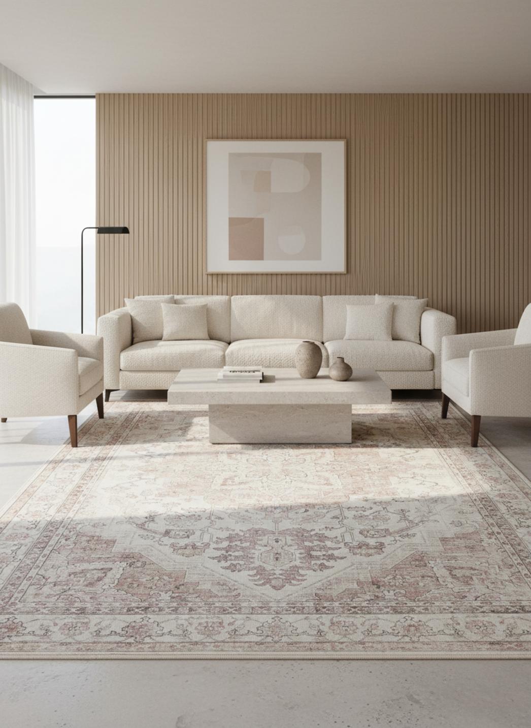 Tapis vintage beige et rose lavable 240x340 cm