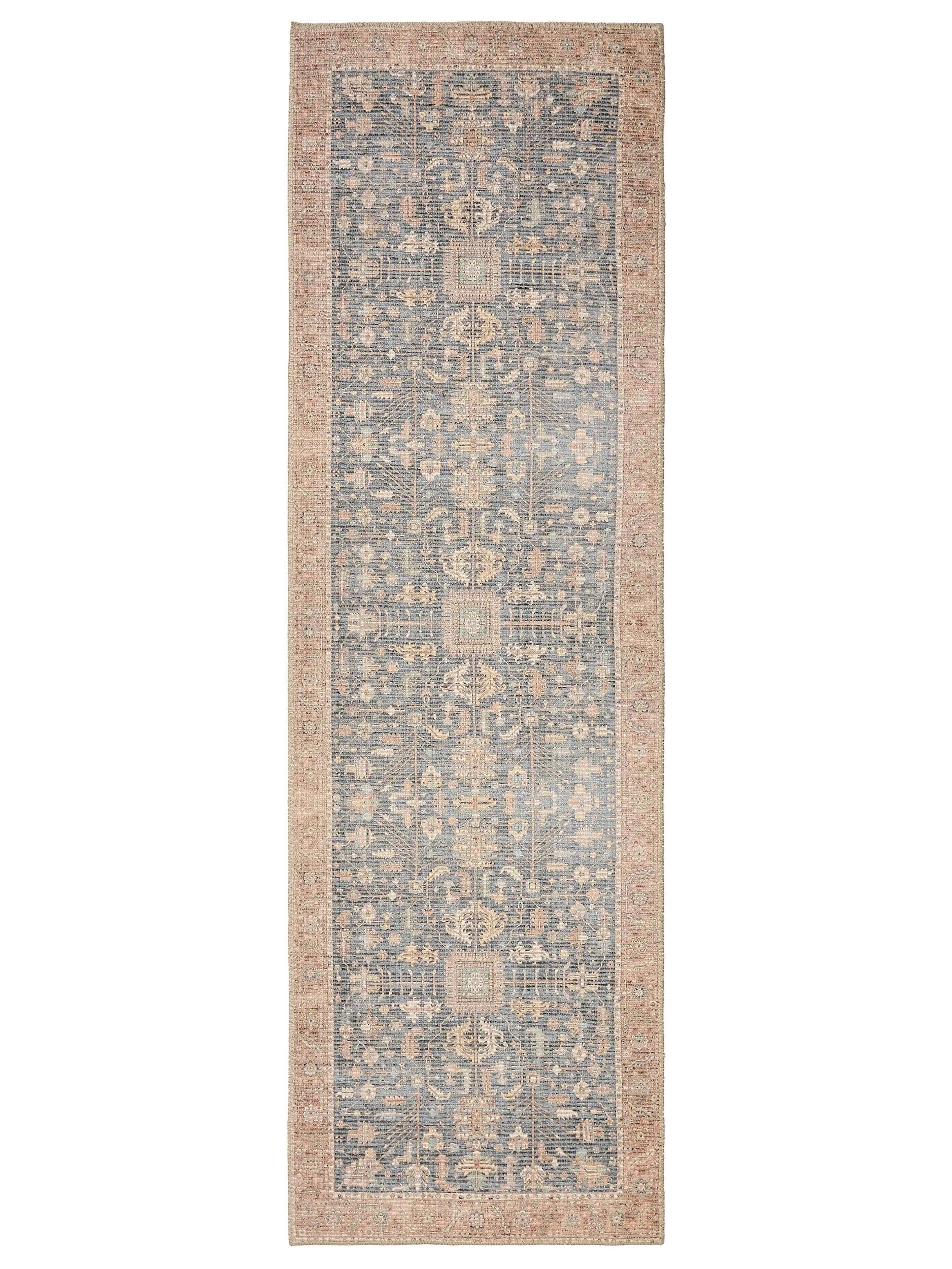 Tapis vintage inspiration bohème de couloir orange et bleu 80x250 cm