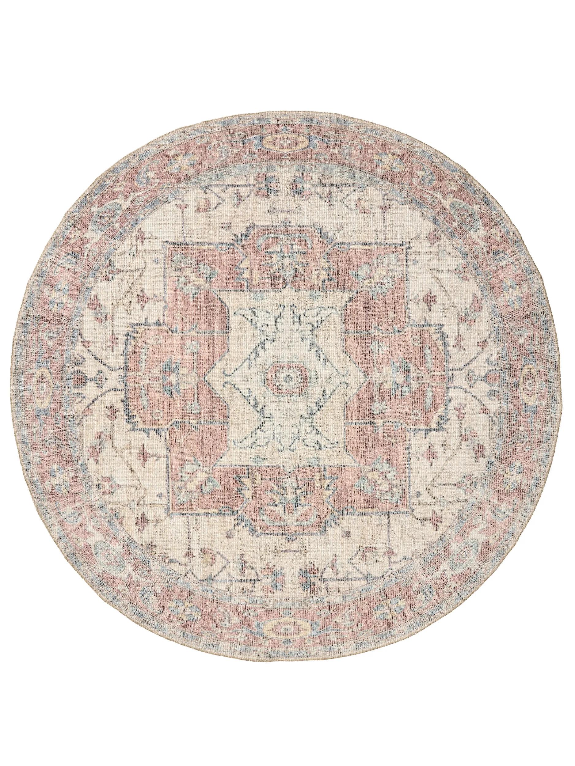 Tapis vintage inspiration oriental rond rouge et beige 240 cm de diamètre