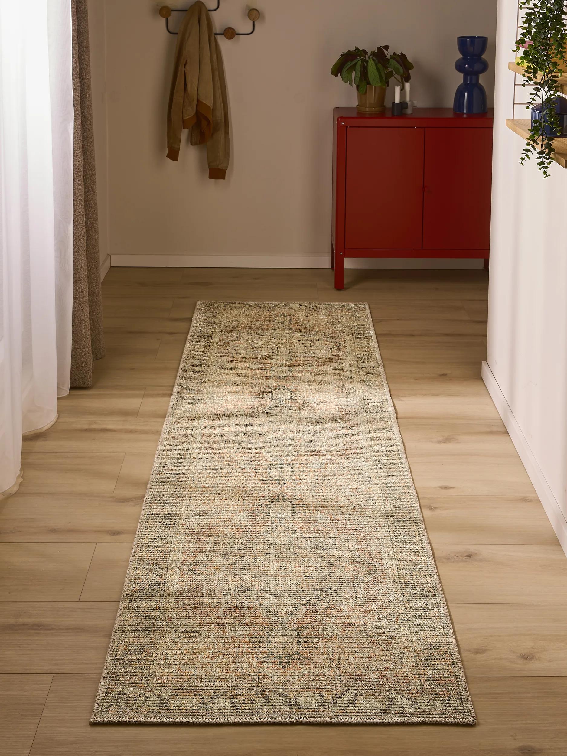 Tapis vintage motif à fleur de couloir beige 80x250 cm