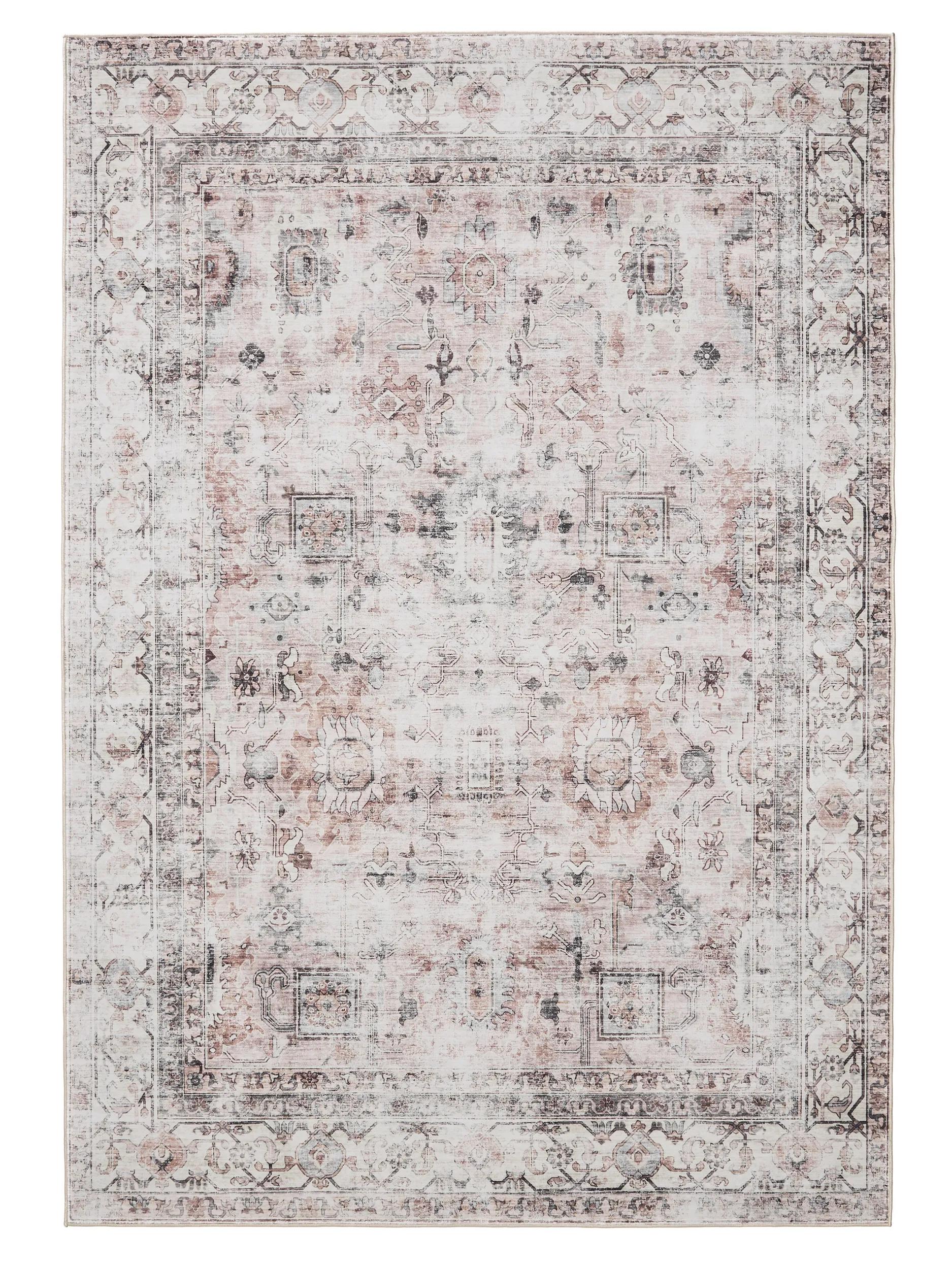 Tapis vintage motif ethnique beige et blanc lavable 80x150 cm