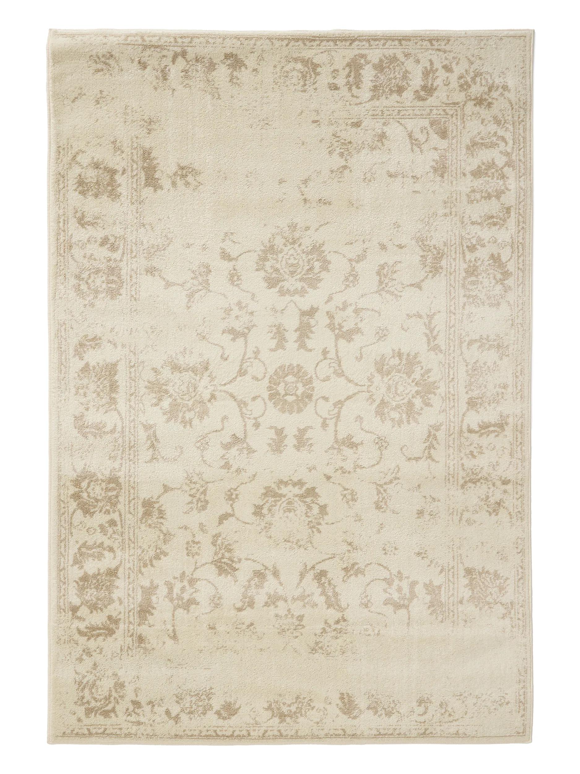 En regardant de plus près, l’impact graphique s’impose par la délicatesse du dessin et la force tranquille du contraste adouci : le motif floral se déploie en arabesques mesurées, mêlant inspirations anciennes et sensibilité contemporaine. Le jeu des nuances, des zones plus effacées aux accents légèrement soutenus, donne au tapis une vibration décorative, une présence qui structure la pièce sans dominer.