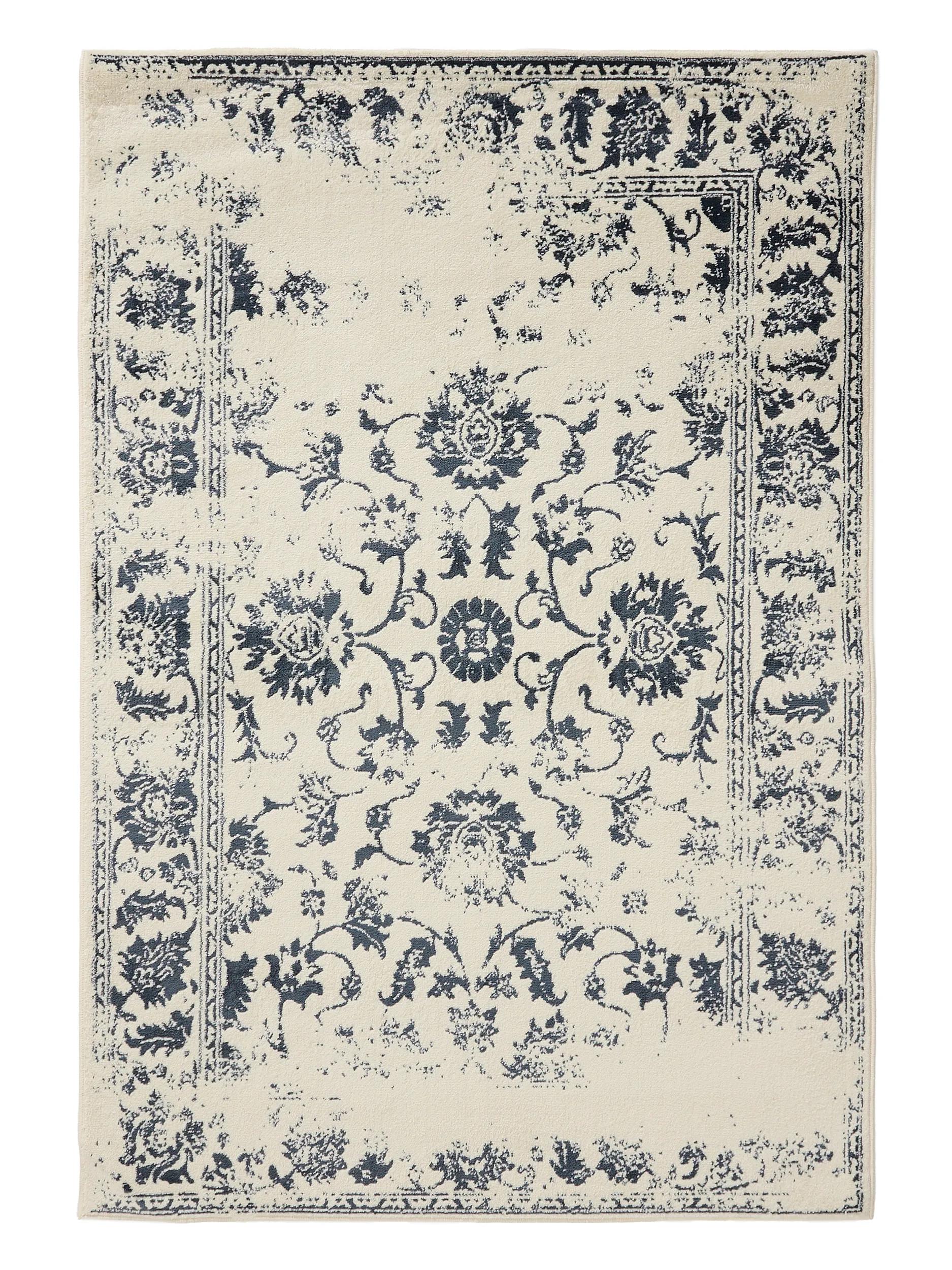Tapis vintage motif floral beige et bleu 80x150 cm