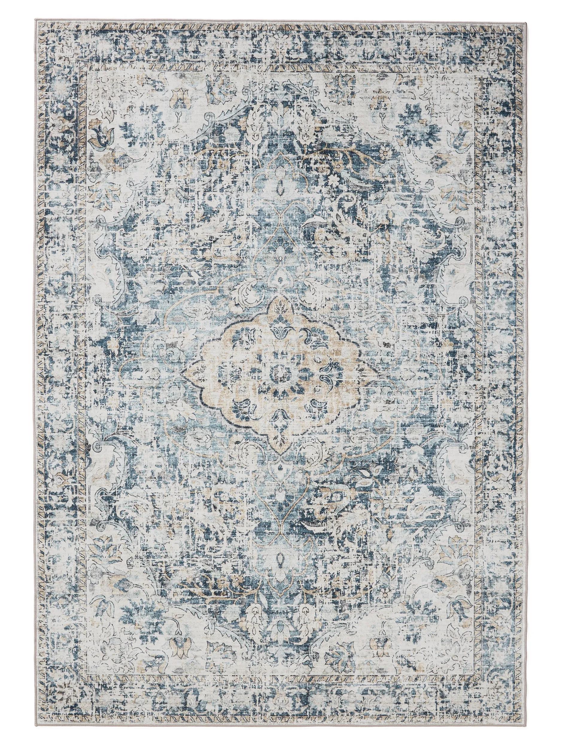 Tapis vintage motif floral beige et bleu lavable 200x300 cm