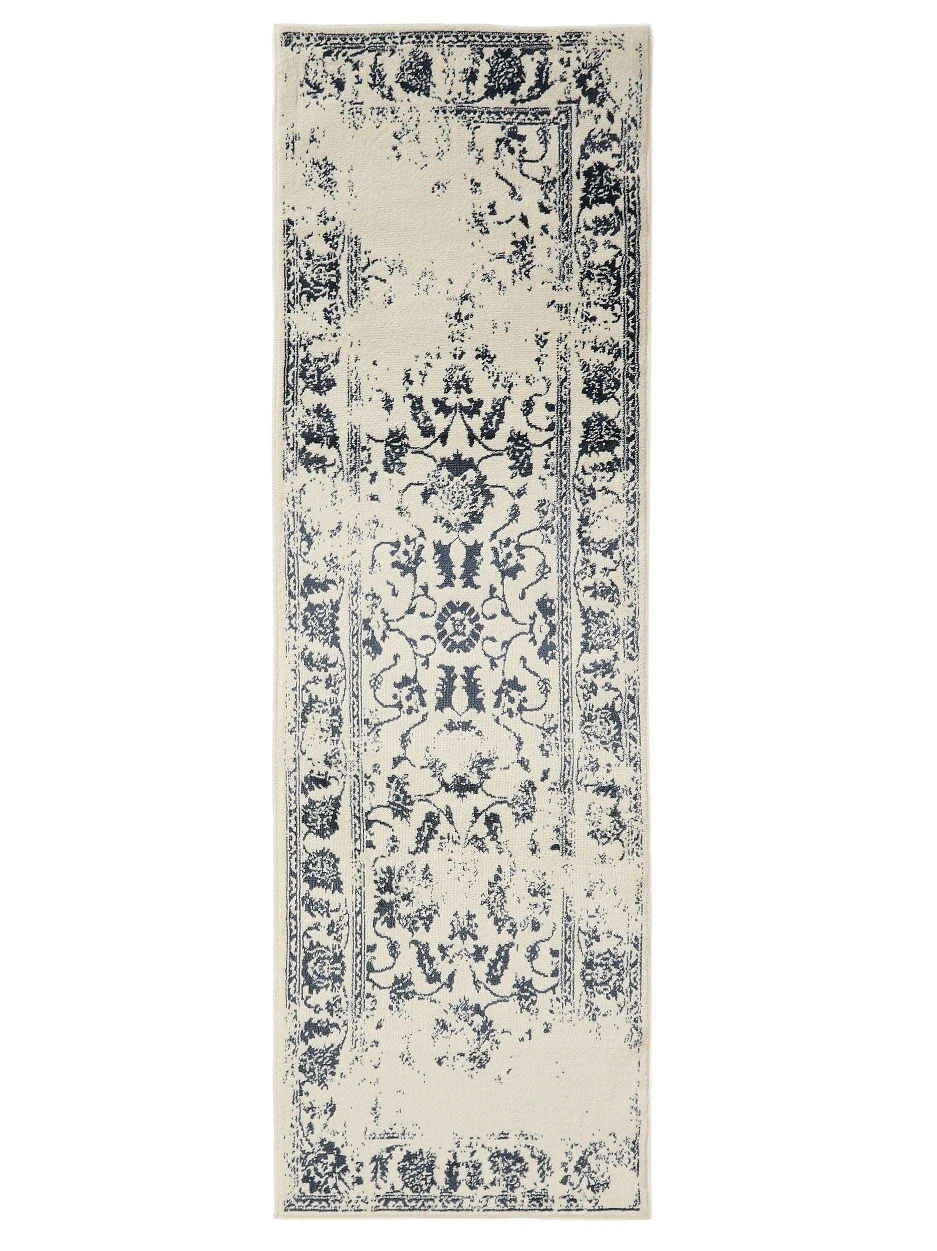 Tapis vintage motif floral de couloir beige et bleu 80x240 cm