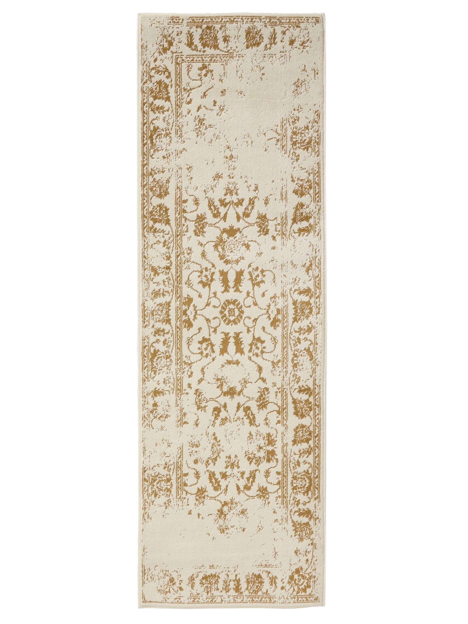 Tapis vintage motif floral de couloir beige et camel 80x240 cm