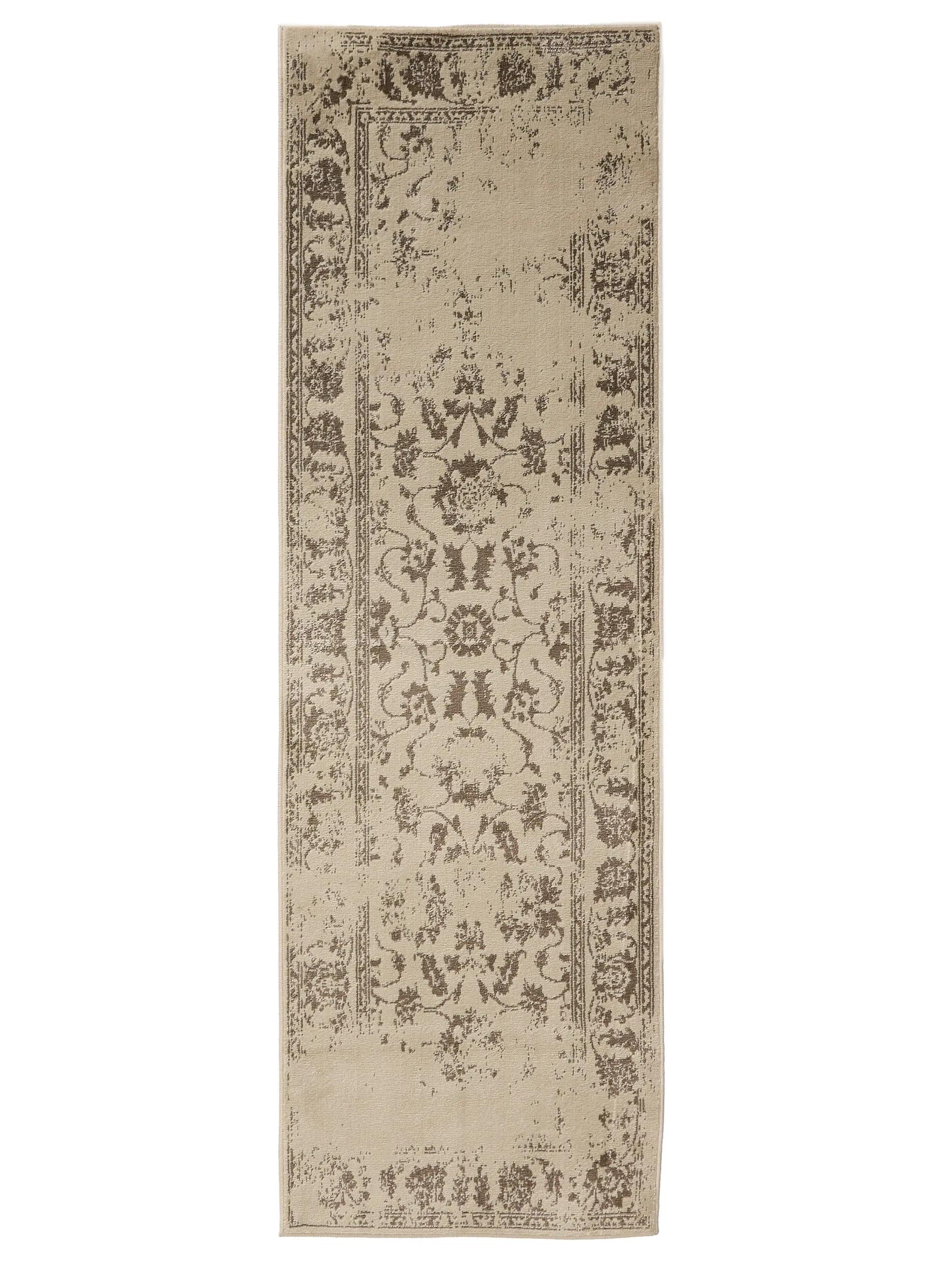 Tapis vintage motif floral de couloir crème et marron 80x240 cm