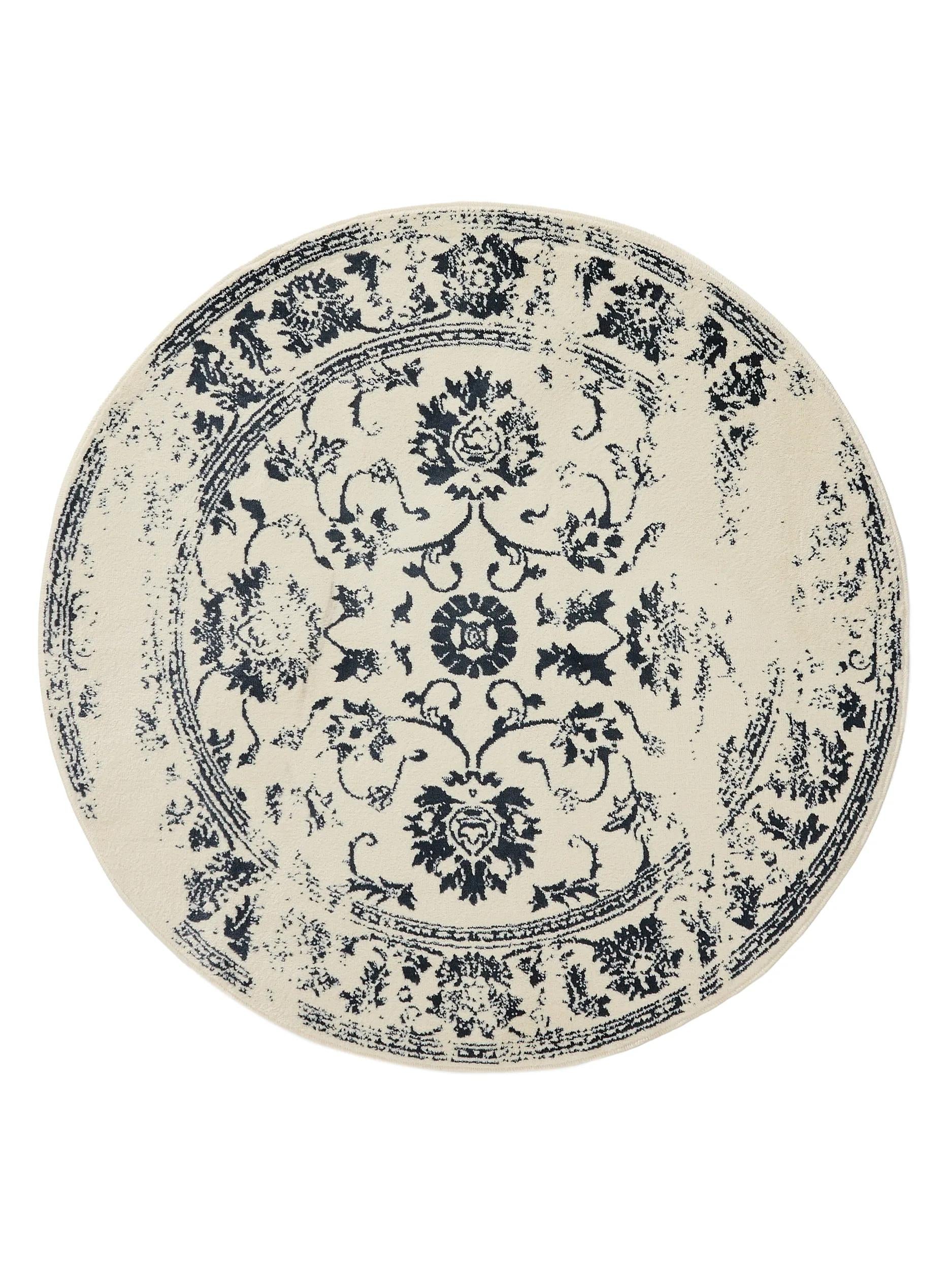 Tapis vintage motif floral rond beige et bleu 120 cm de diamètre
