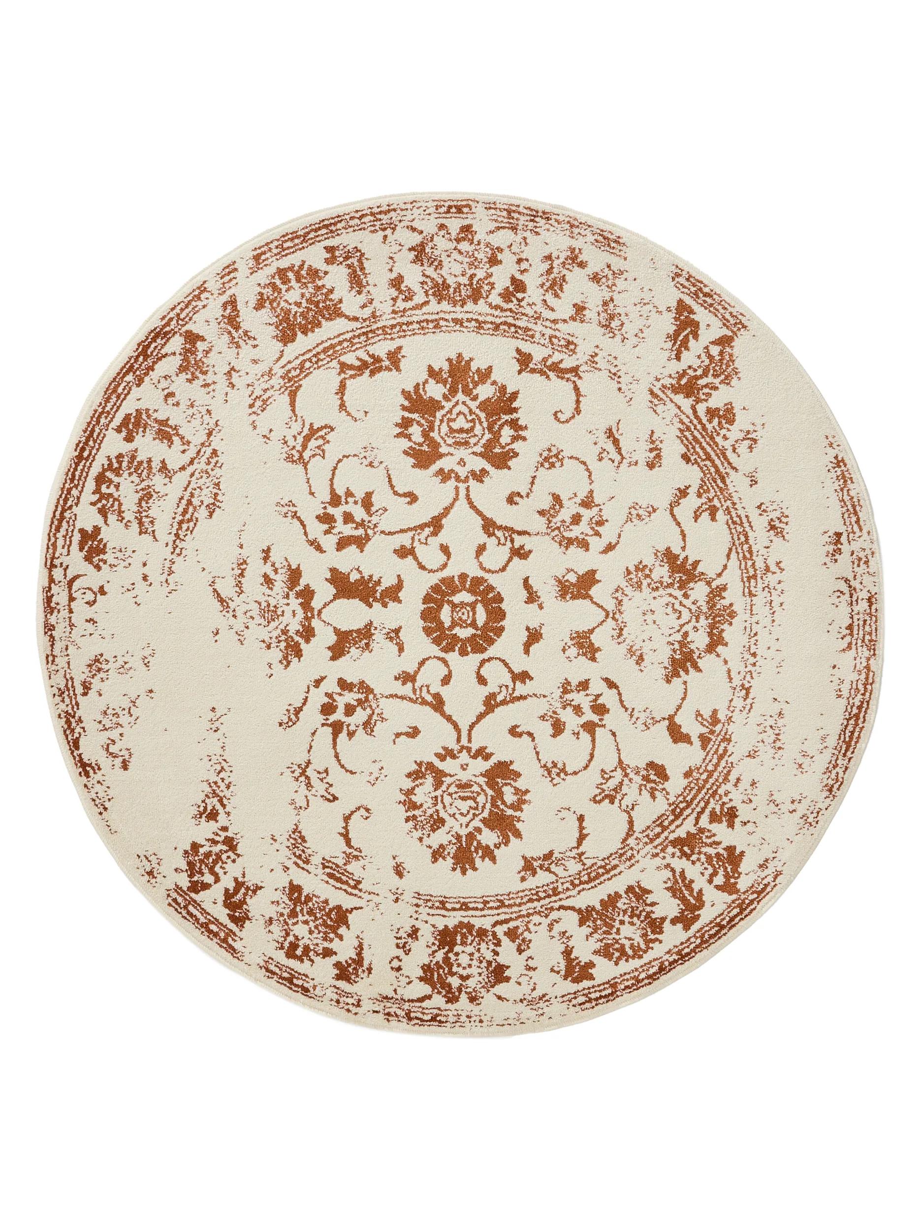 Tapis vintage motif floral rond crème et terracotta 160 cm de diamètre
