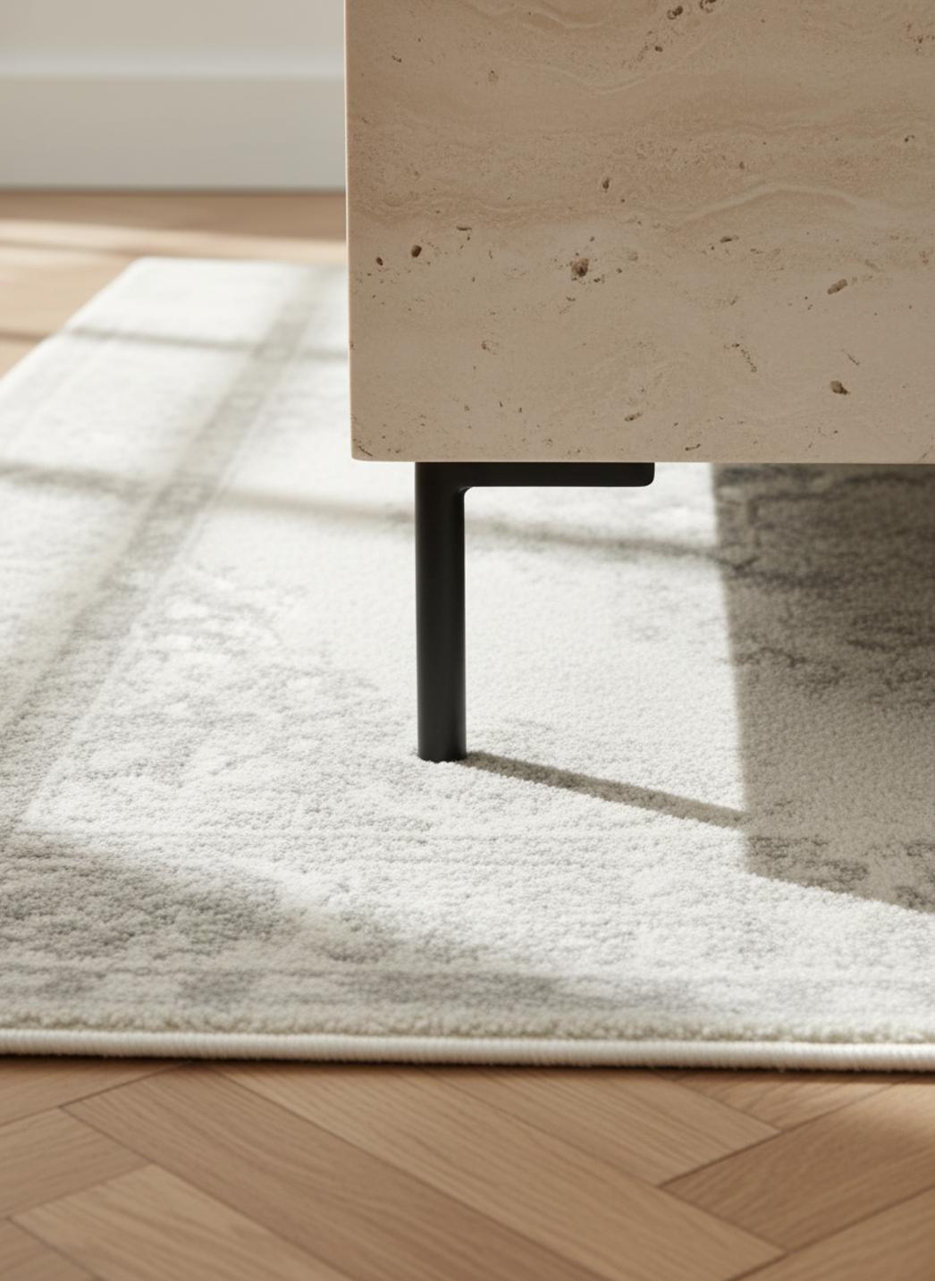 La matière, serrée et confortable sous le pas, transmet une sensation immédiate de chaleur et d’accueil. La douceur du tissage se ressent sans ostentation et le relief discret souligne les motifs sans surcharger l’espace, offrant un confort propice à une chaise longue, un coin lecture ou le centre d’un salon où l’on aime s’attarder.