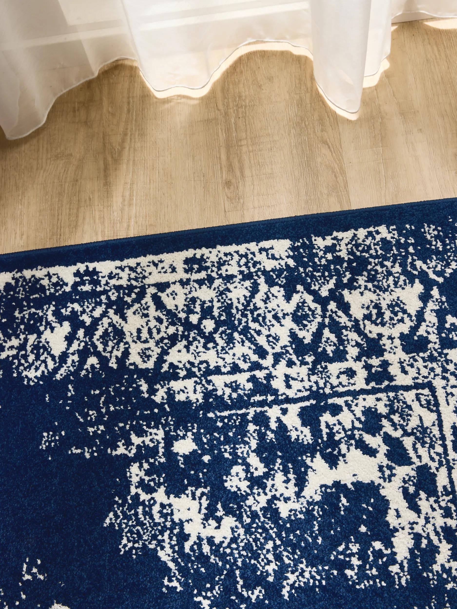 Tapis vintage motif oriental bleu foncé 80x150 cm