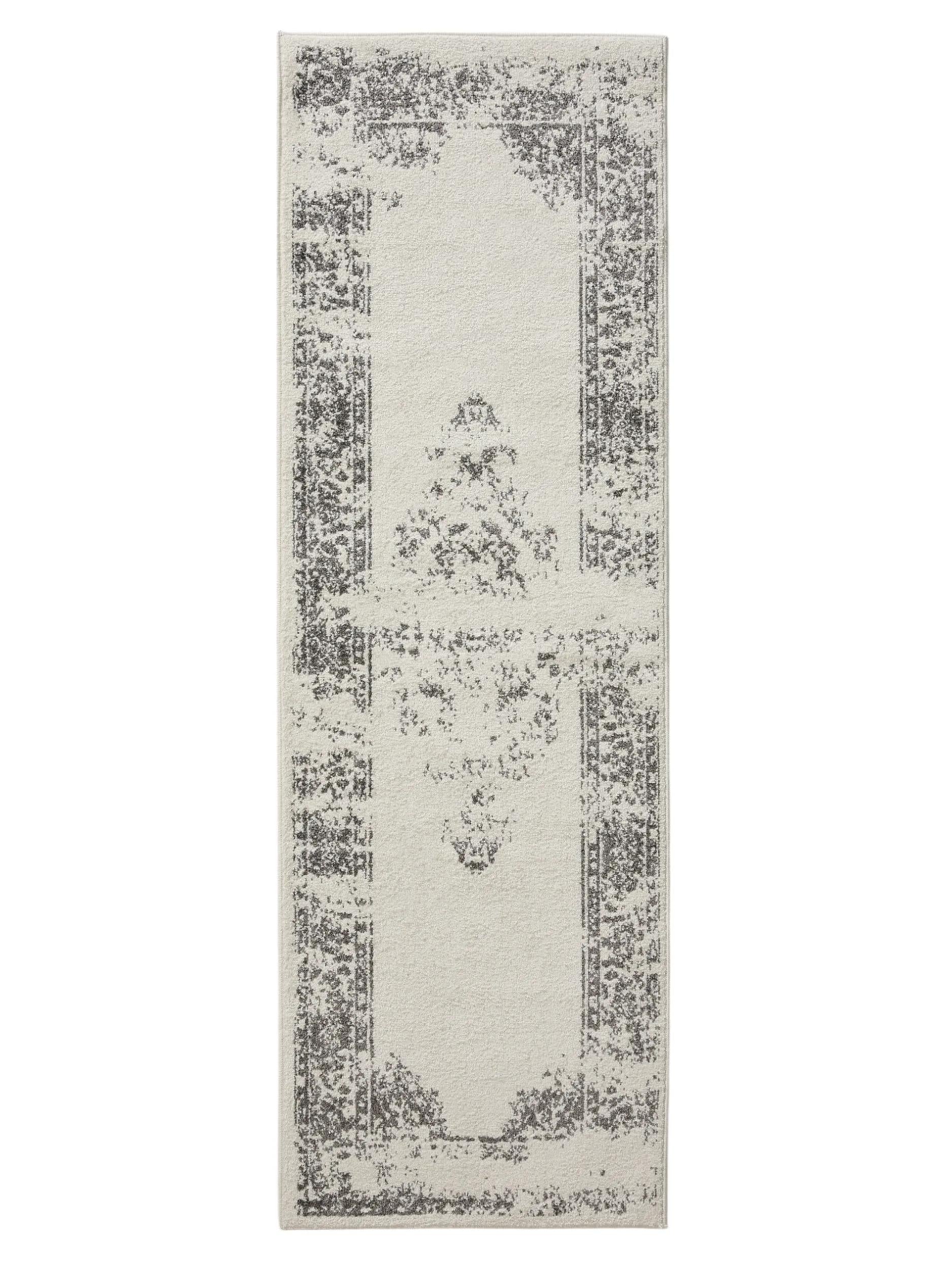 Tapis vintage motif oriental de couloir beige et gris 80x240 cm