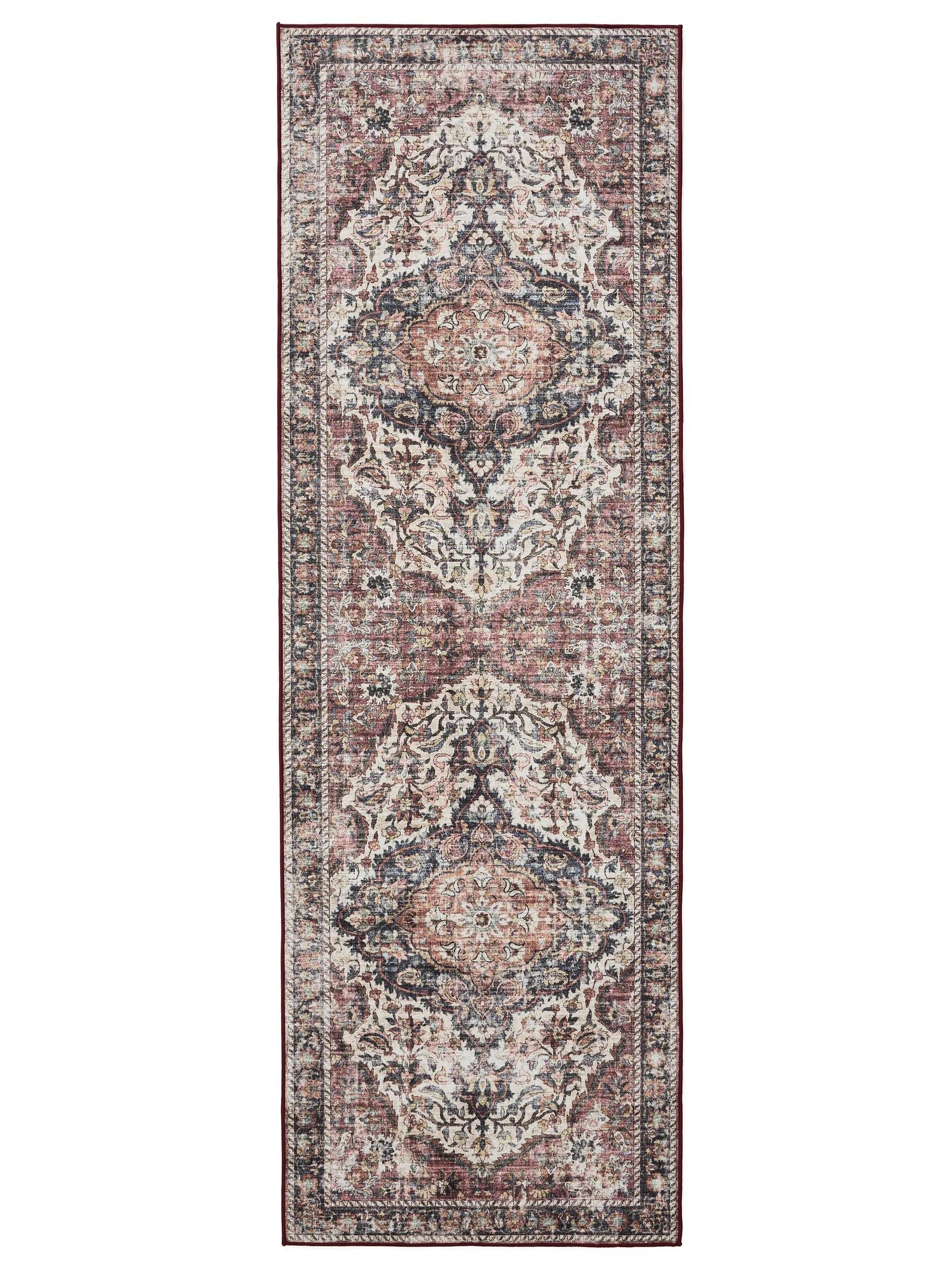Tapis vintage motif oriental de couloir beige lavable 80x240 cm