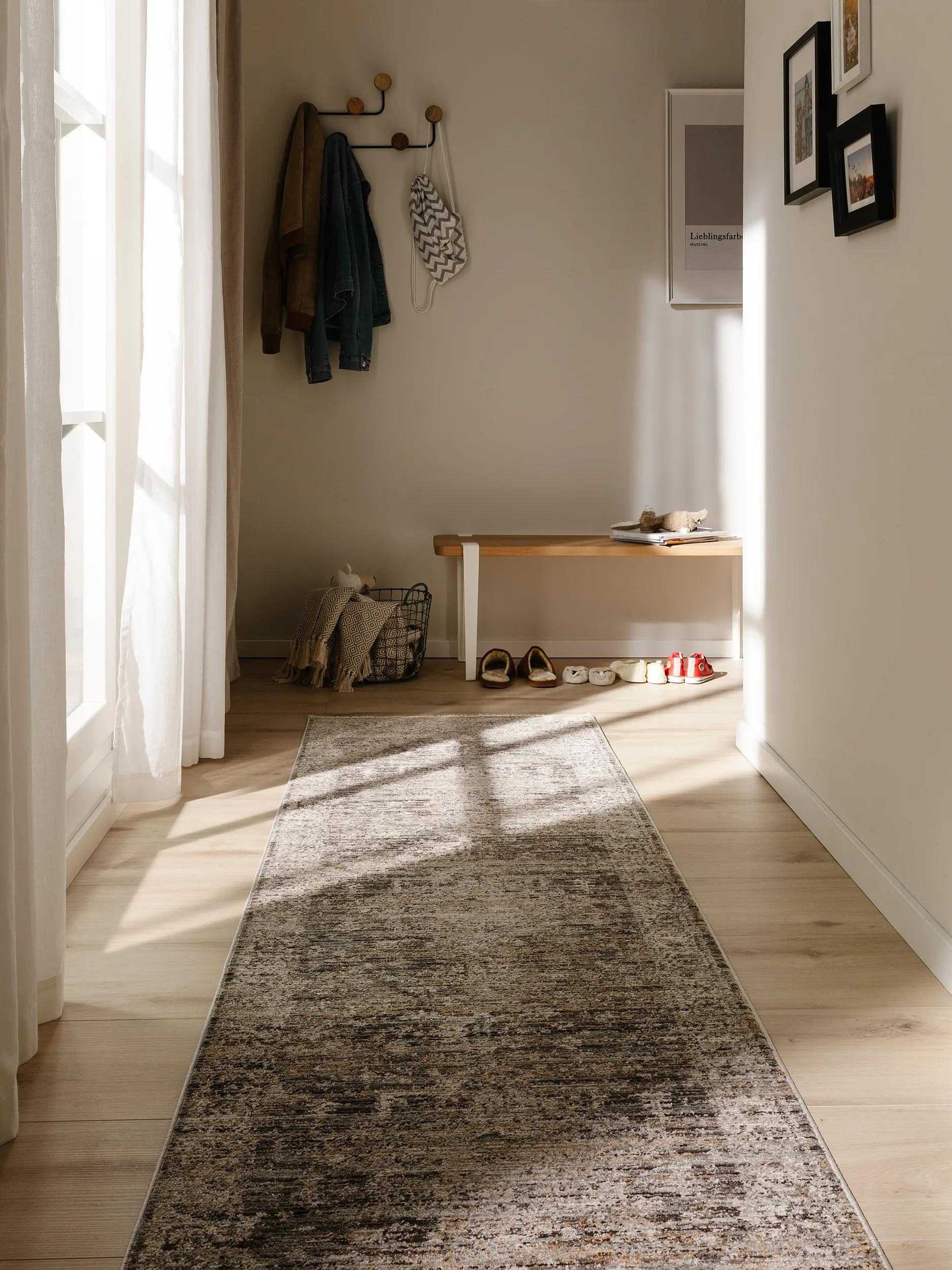 Tapis vintage motif oriental de couloir gris 80x250 cm
